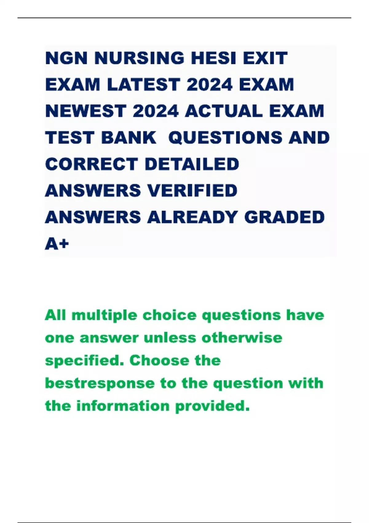 NGN NURSING HESI EXIT EXAM LATEST 2024 EXAM NEWEST 2024 ACTUAL EXAM TEST BANK