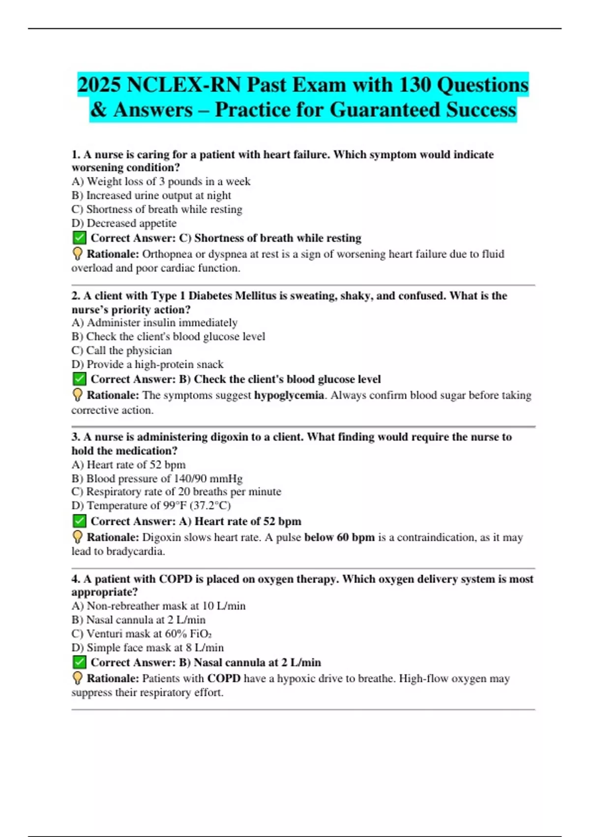 1. A nurse is caring for a patient with heart failure. Which symptom would indicate