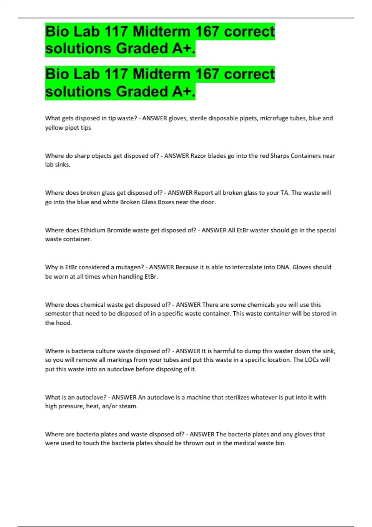 Where are bacteria plates and waste disposed of? - ANSWER The bacteria plates and any gloves that