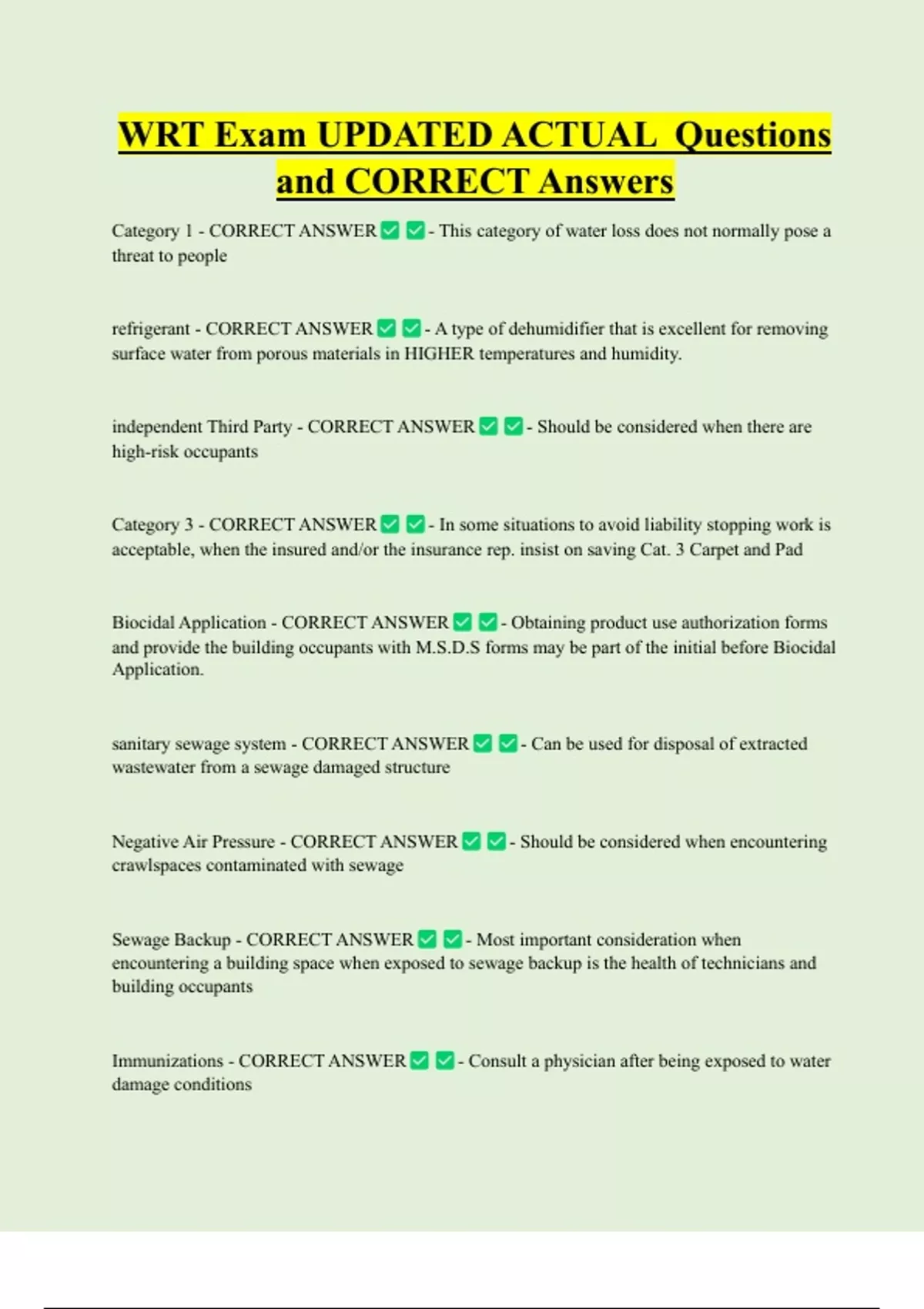 Category 1 - CORRECT ANSWER - This category of water loss does not normally pose a