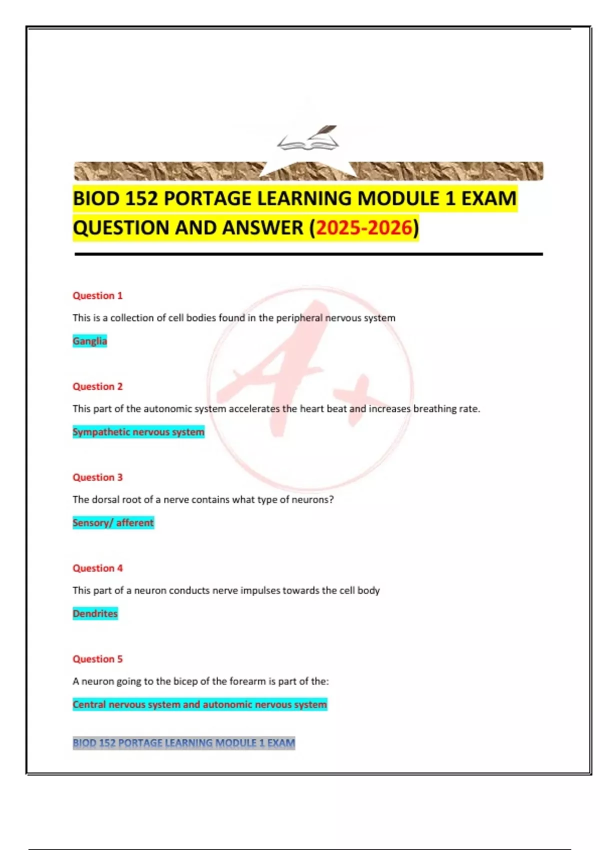 BIOD 152 PORTAGE LEARNING MODULE 1 EXAM