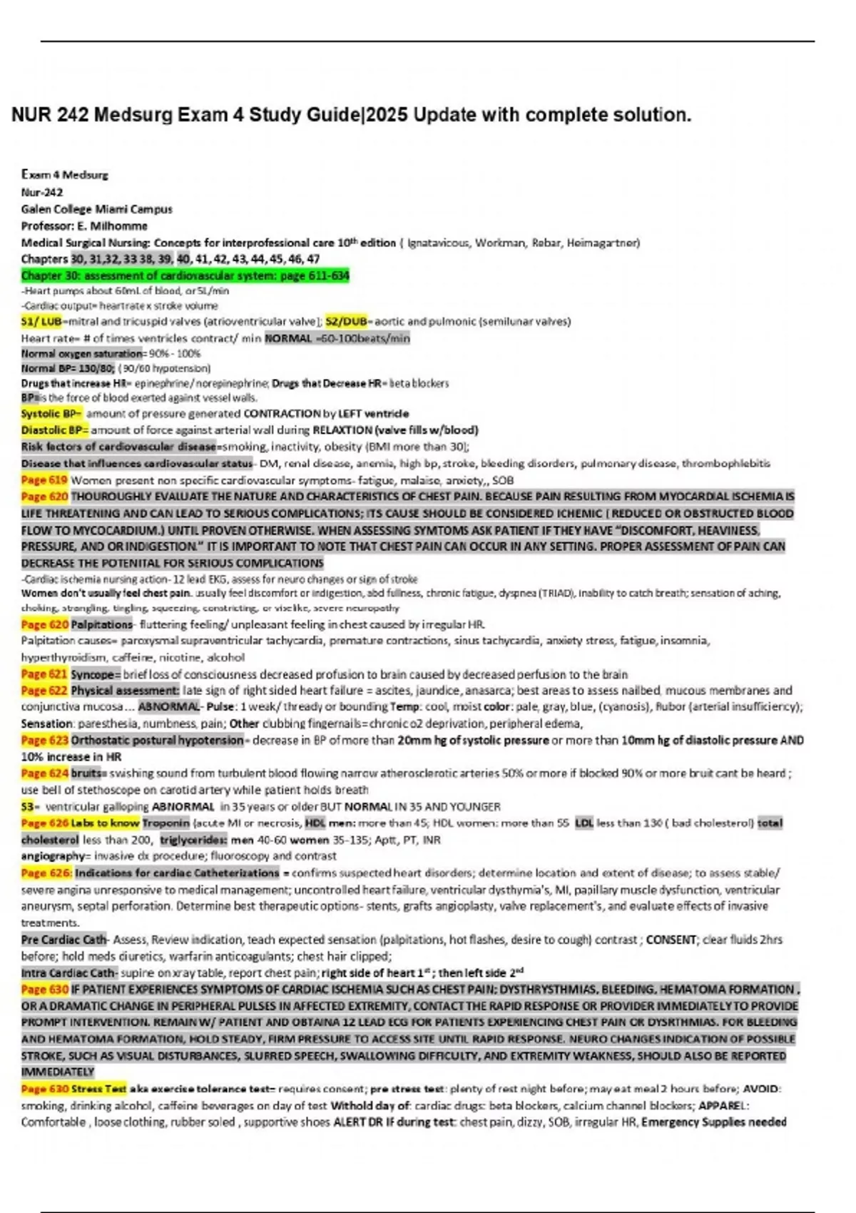 NUR 242 Med Surg Exam 1,2,3 and 4 Bundled Study Guides with complete solutions-Galen.