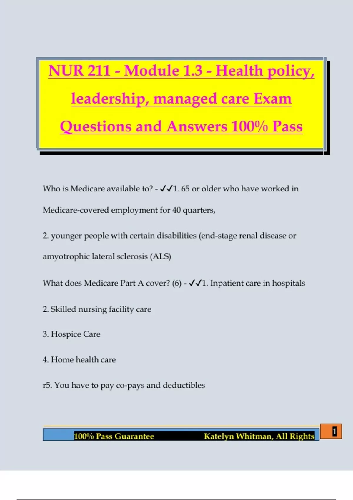 100% Pass Guarantee Katelyn Whitman, All Rights