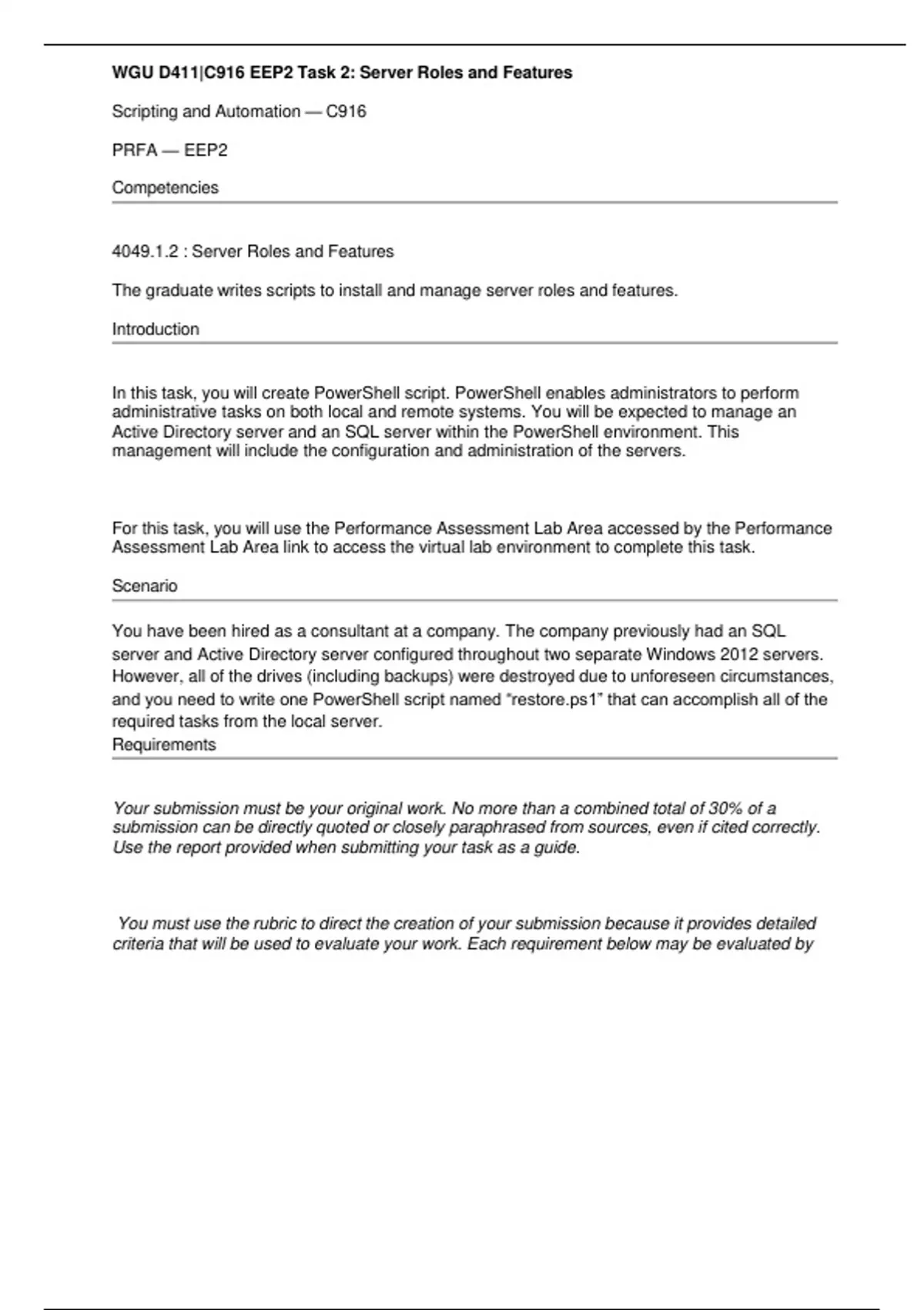 Note: The remainder of this task shall be completed within the same script file, “restore.ps1.”