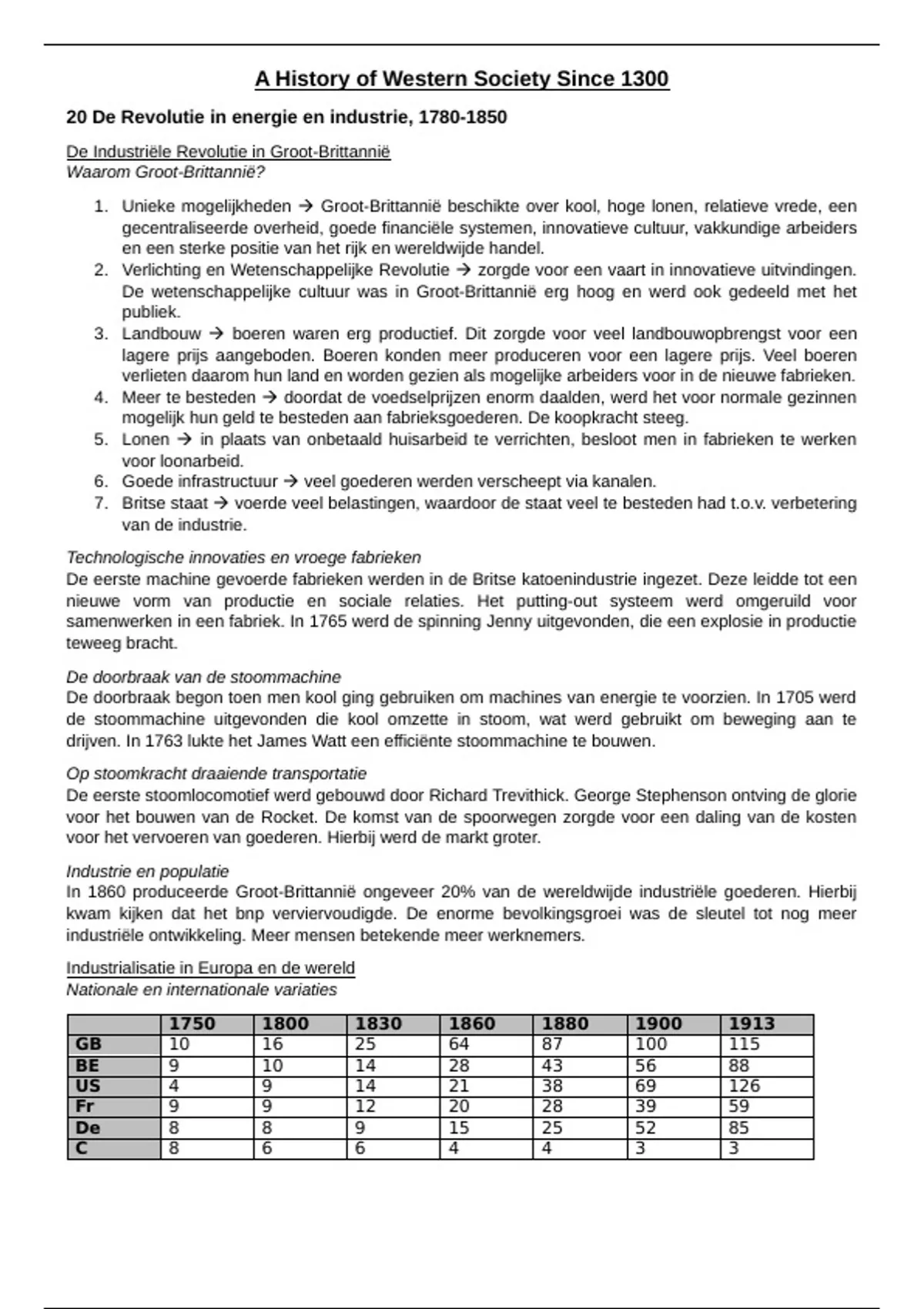 Industrialisatie in Europa en de wereld