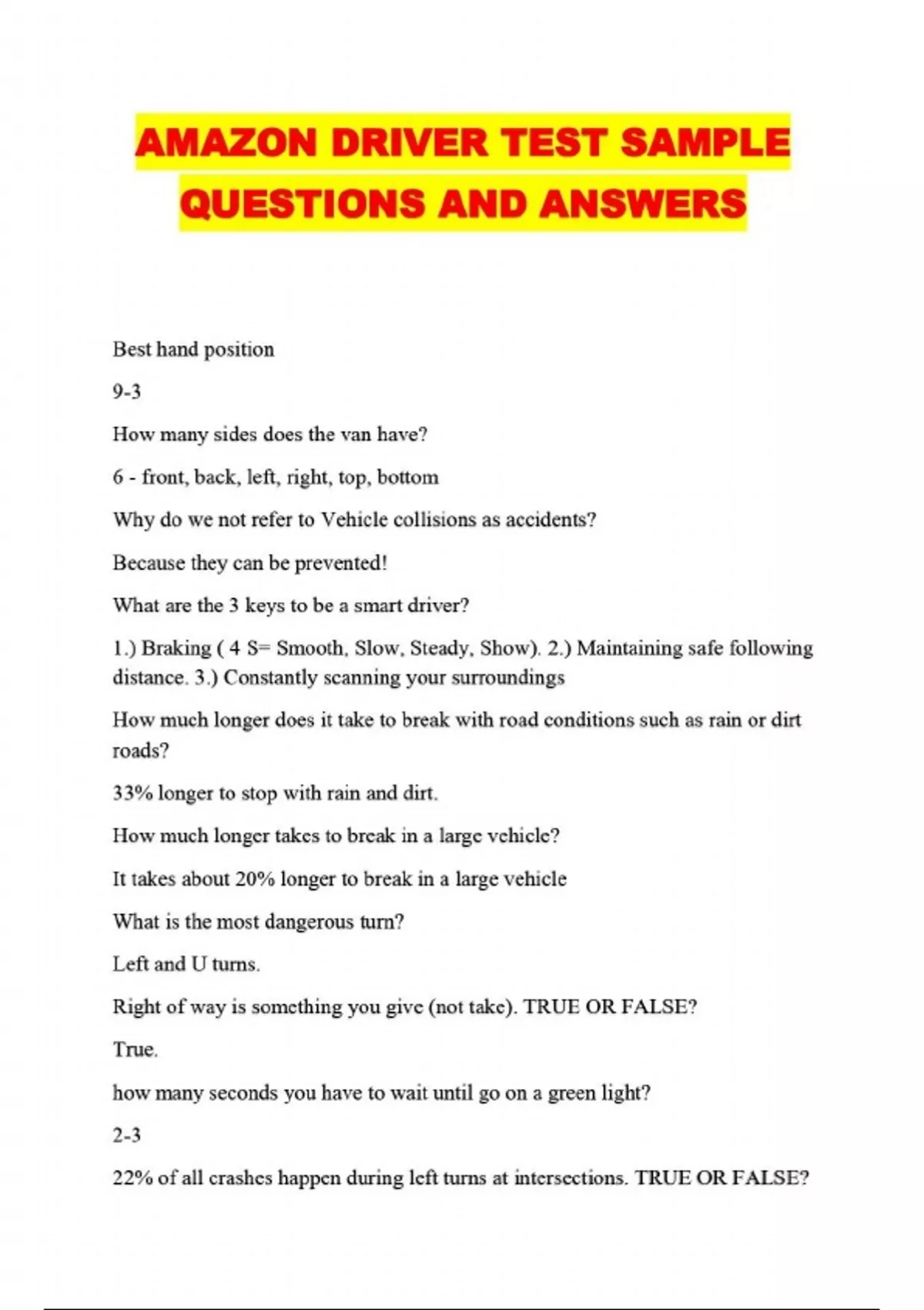 AMAZON DRIVER TEST SAMPLE QUESTIONS AND ANSWERS...