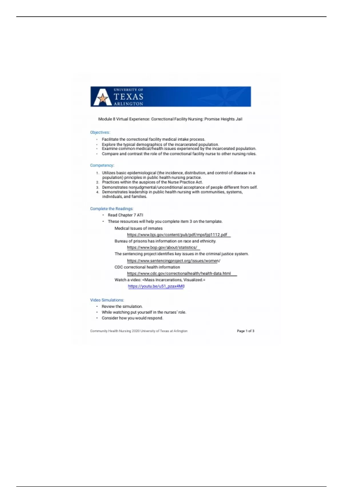 Community Health Nursing 2020 University of Texas at Arlington Page 1 of 3
