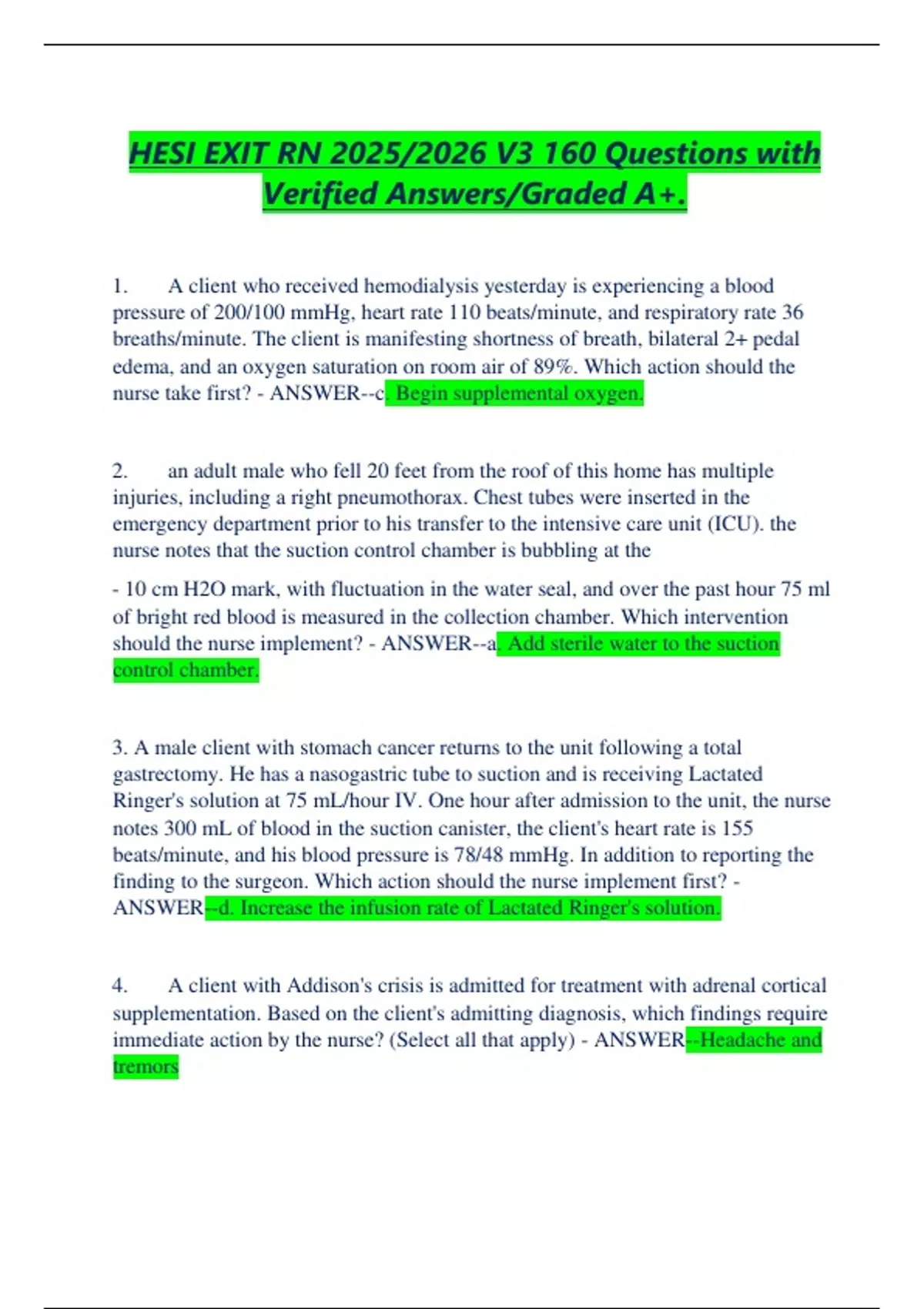 HESI EXIT RN 2025/2026 V3 160 Questions with Verified Answers/Graded A+.