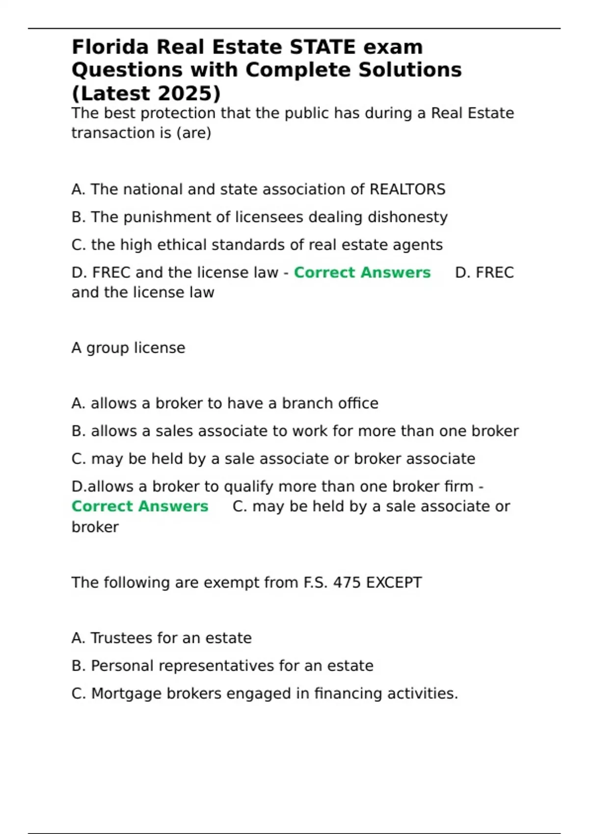 D. FREC and the license law - Correct Answers ✅D. FREC