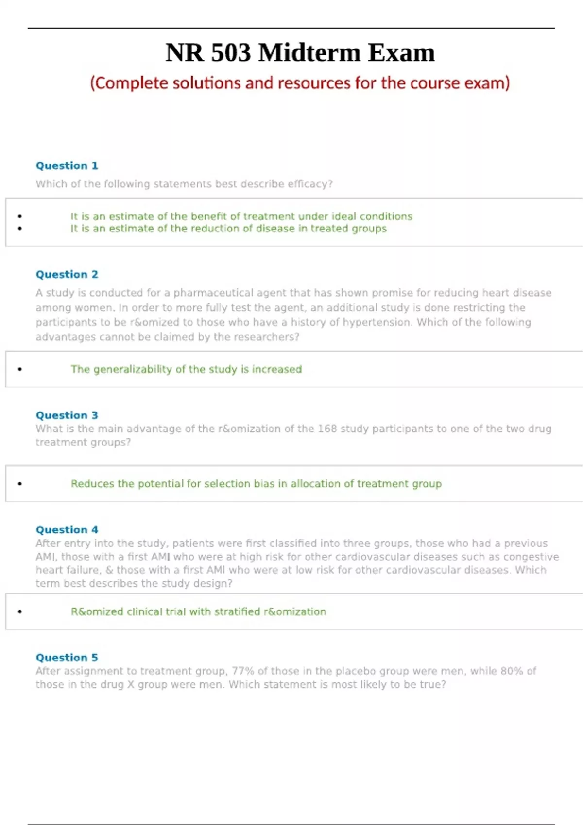 NR 503 Midterm Exam (Complete solutions and resources for the course exam).