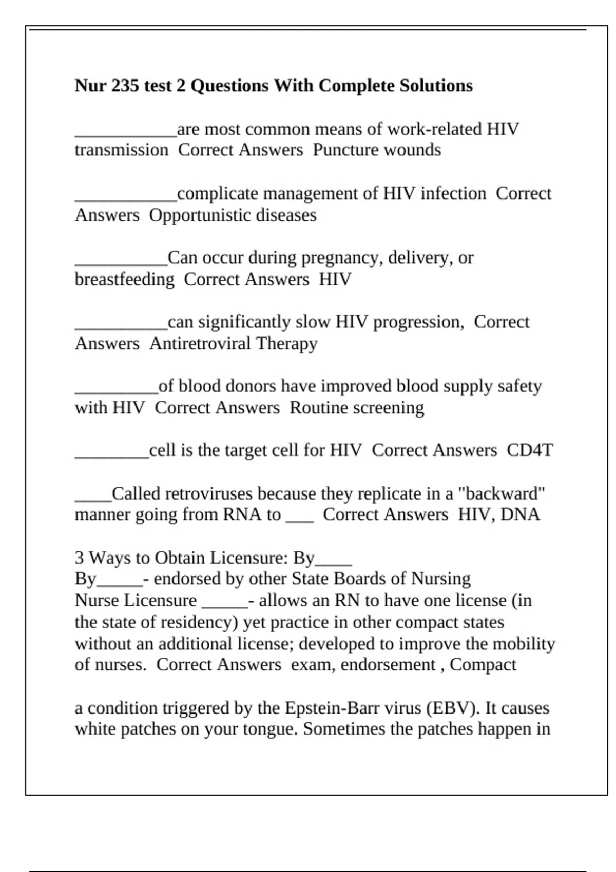 by HIV Correct Answers Oral Hairy Leukoplakia