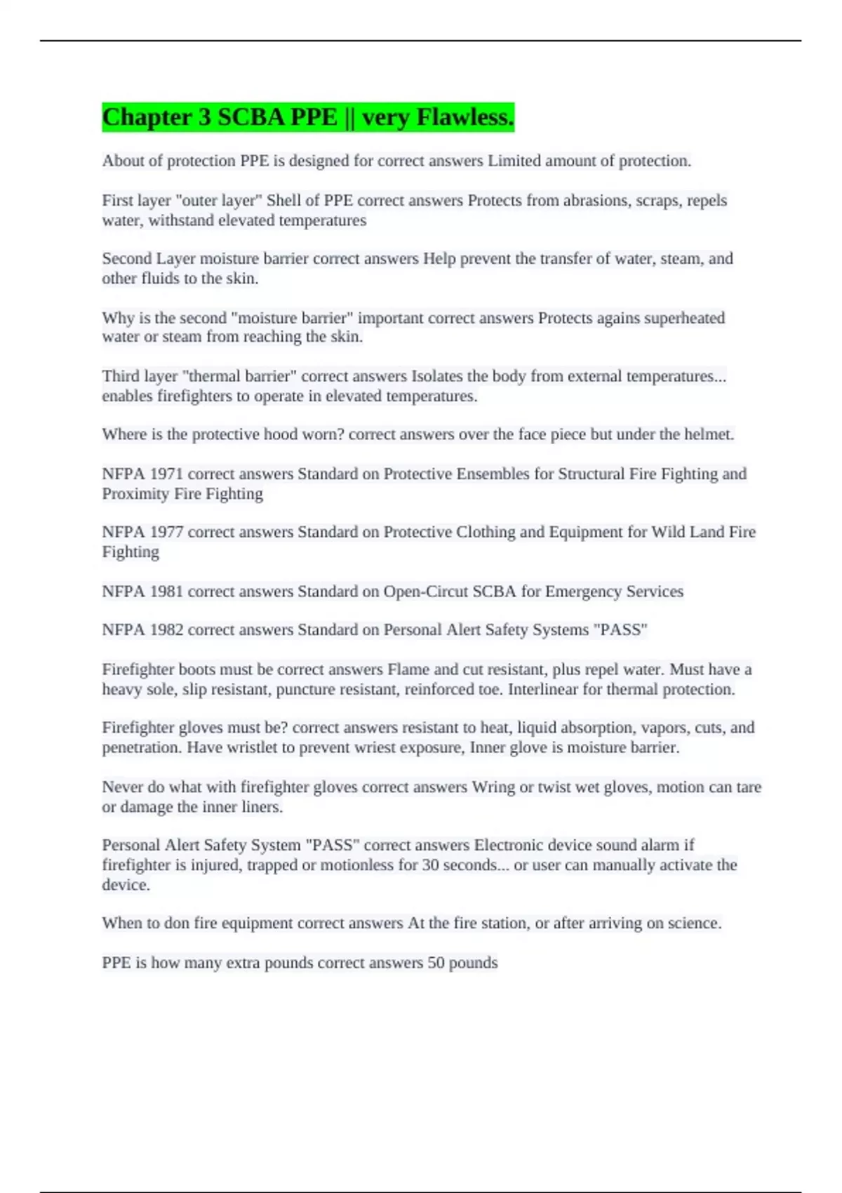 NFPA 1971 correct answers Standard on Protective Ensembles for Structural Fire Fighting and