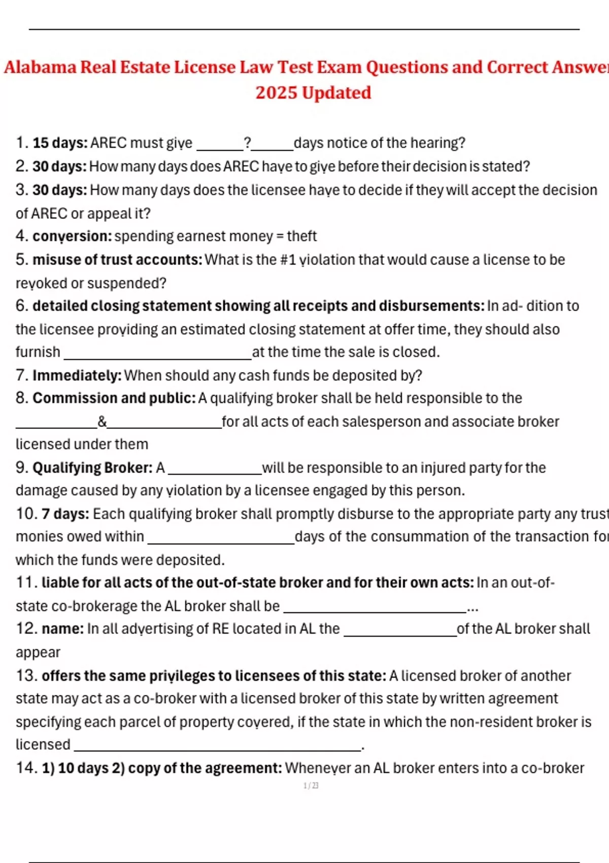 Alabama Real Estate License Law Test Exam Questions and Correct Answers 2025 Updated