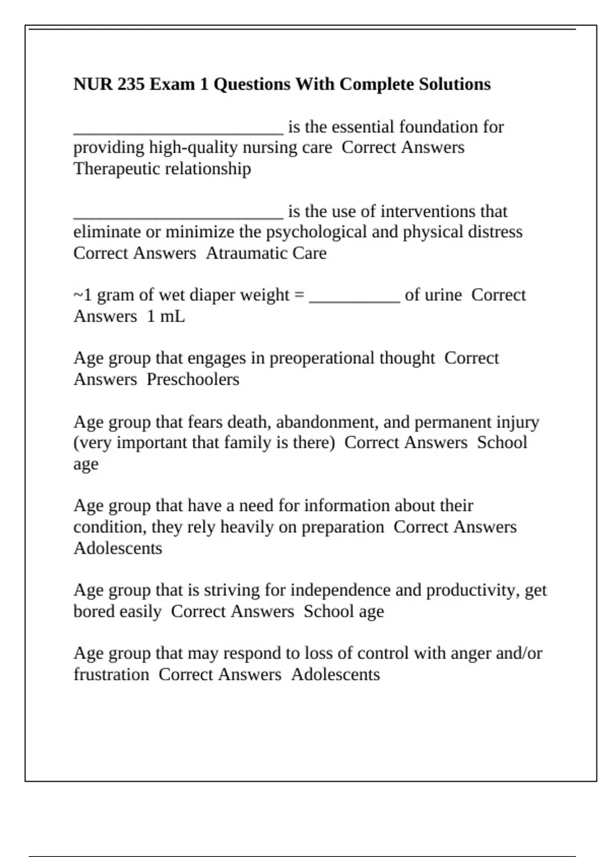 Correct Answers Atraumatic Care