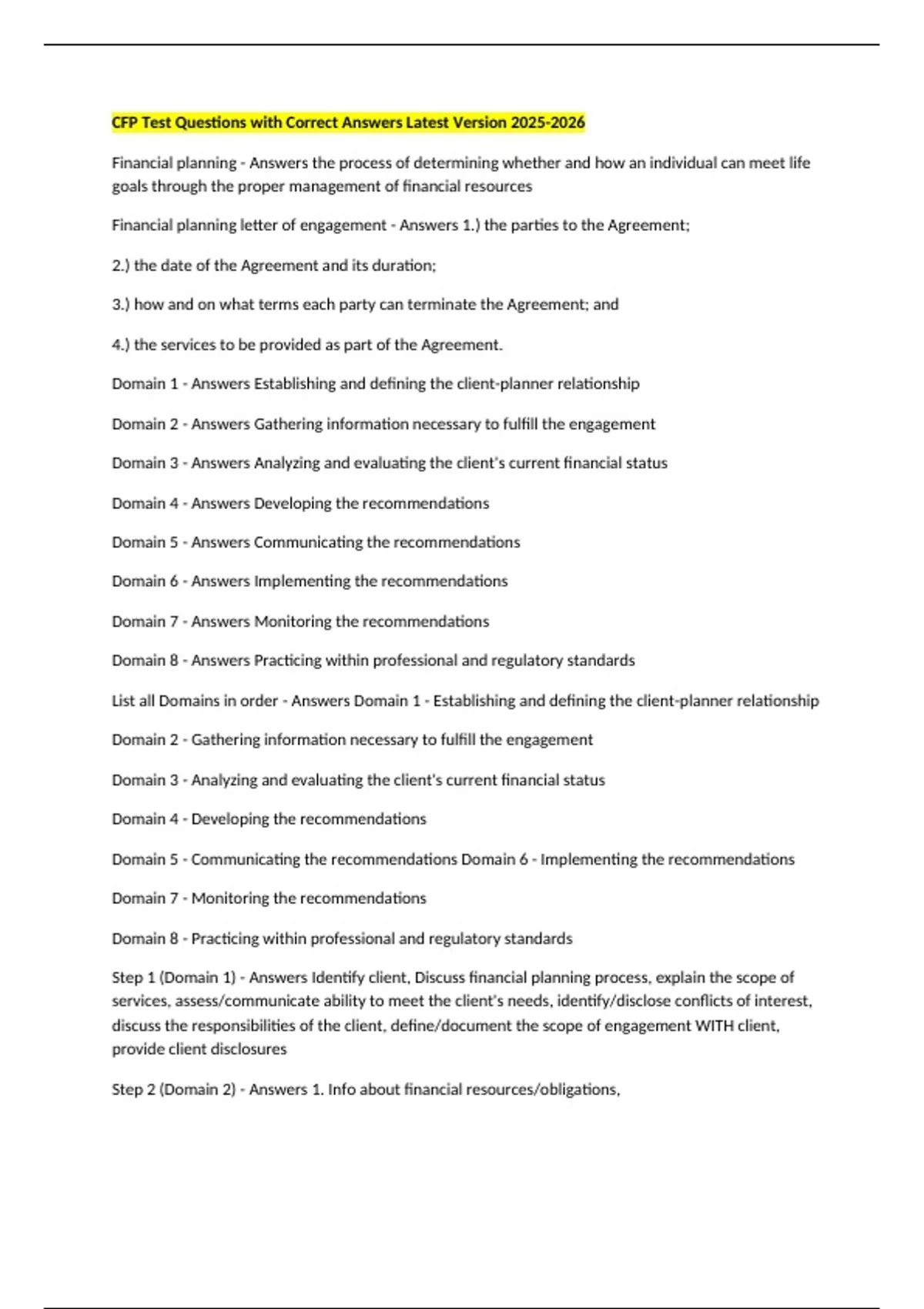 Step 1 (Domain 1) - Answers Identify client, Discuss financial planning process, explain the scope of