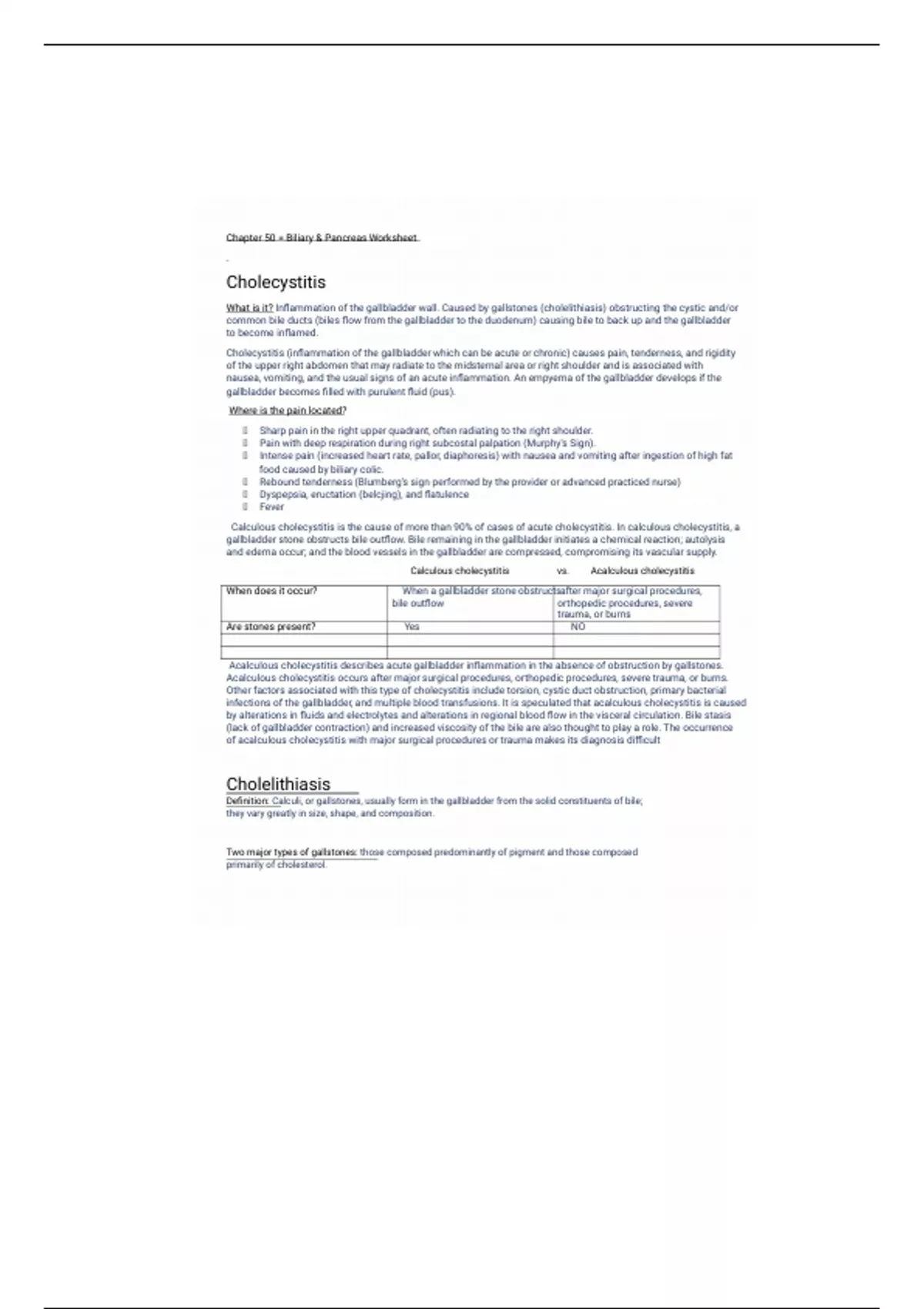 Calculous cholecystitis vs. Acalculous cholecystitis