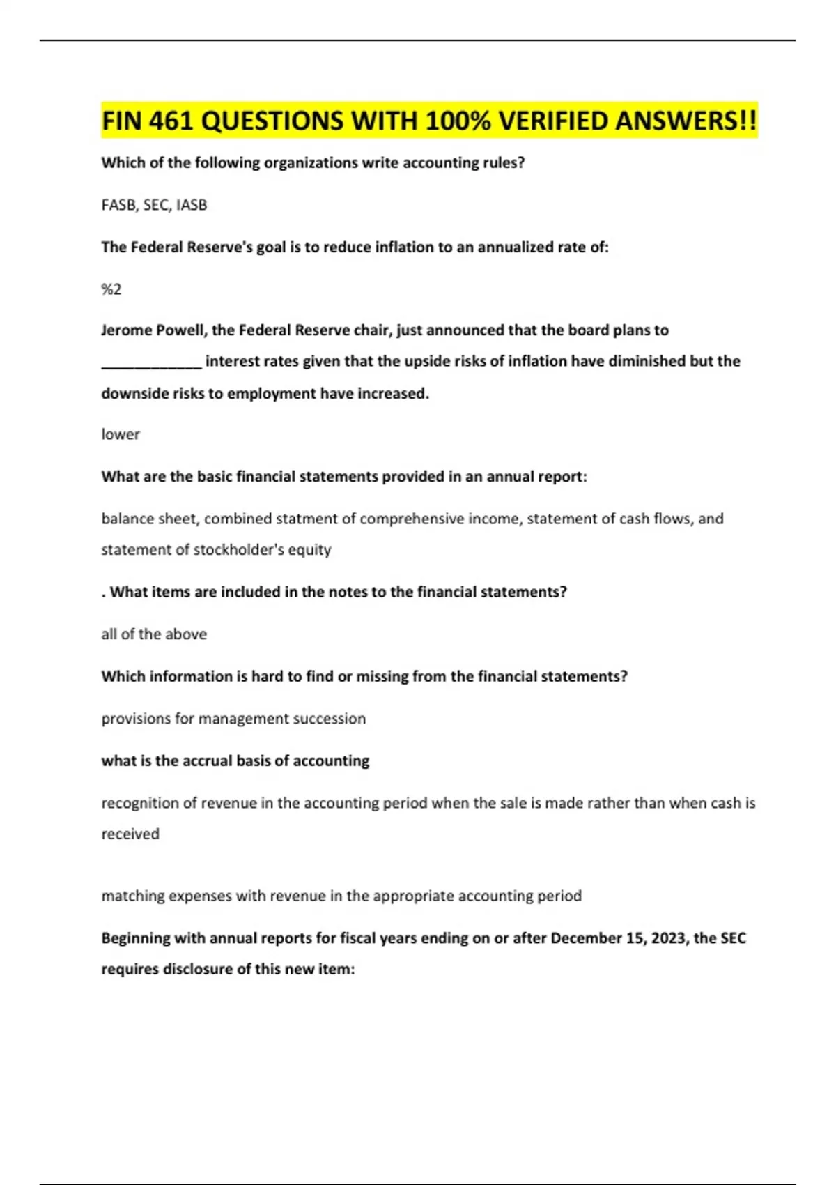 FIN 461 QUESTIONS WITH 100% VERIFIED ANSWERS!!