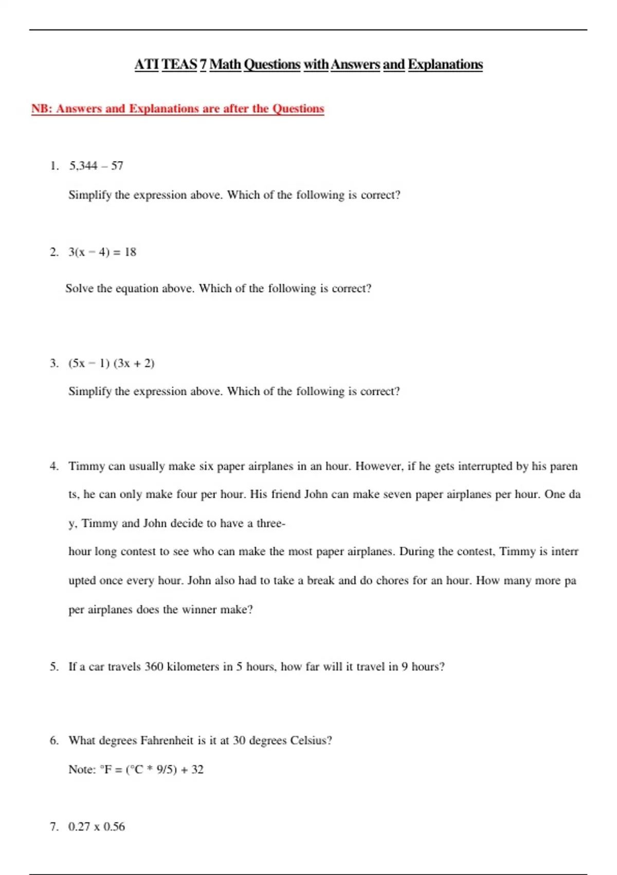 ATI TEAS 7 Math Questions with Answers and Explanations