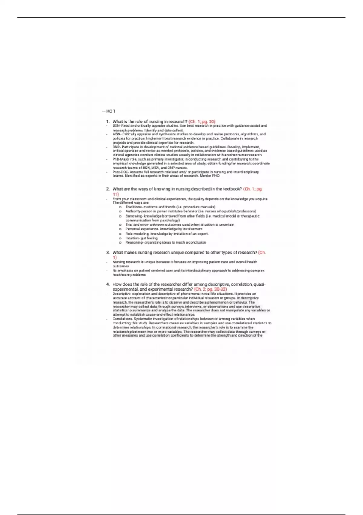 1. What is the role of nursing in research? (Ch. 1; pg. 20)