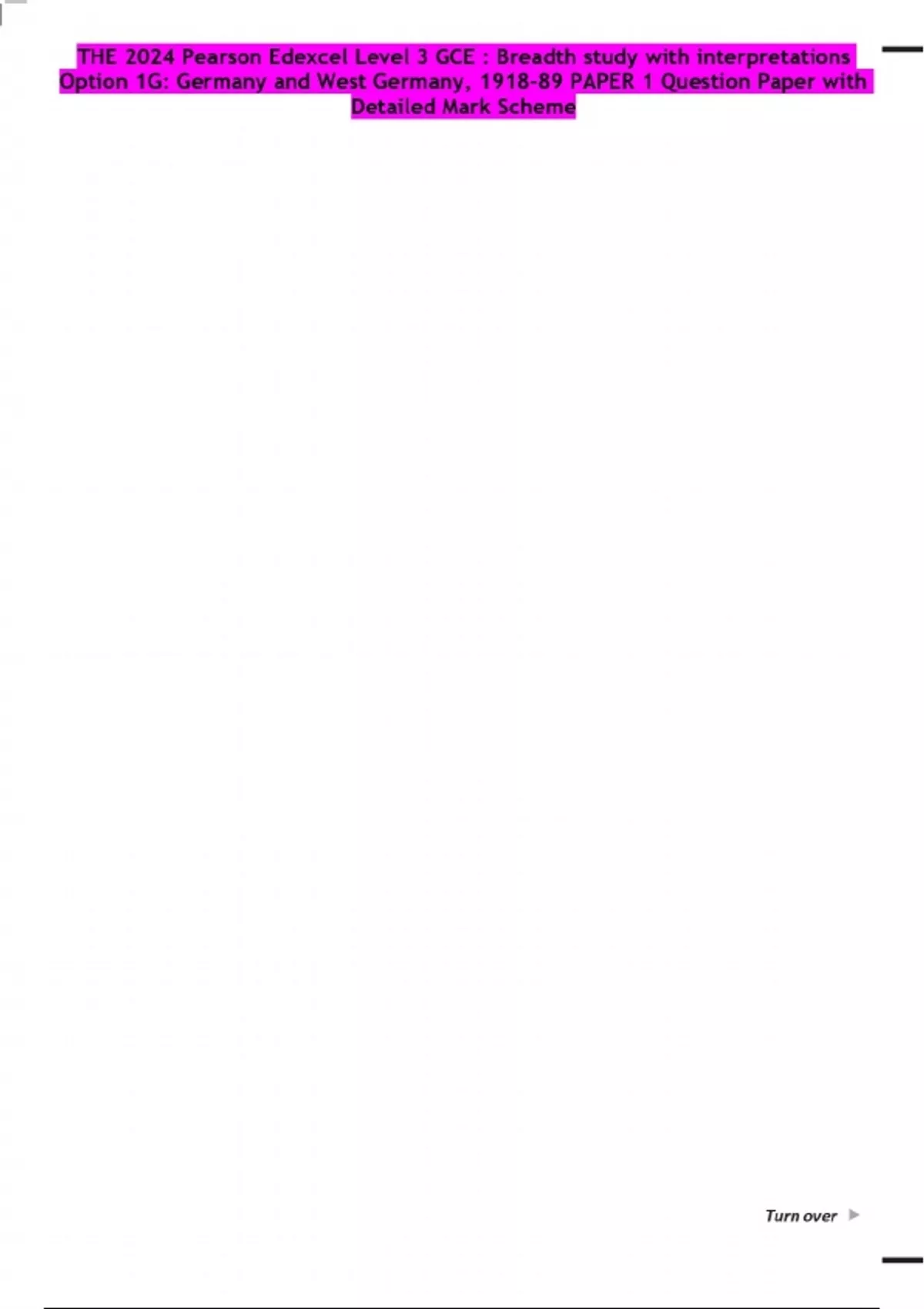 THE 2024 Pearson Edexcel Level 3 GCE : Breadth study with interpretations Option 1G: Germany and West Germany, 1918–89 PAPER 1 Question Paper with Detailed Mark Scheme