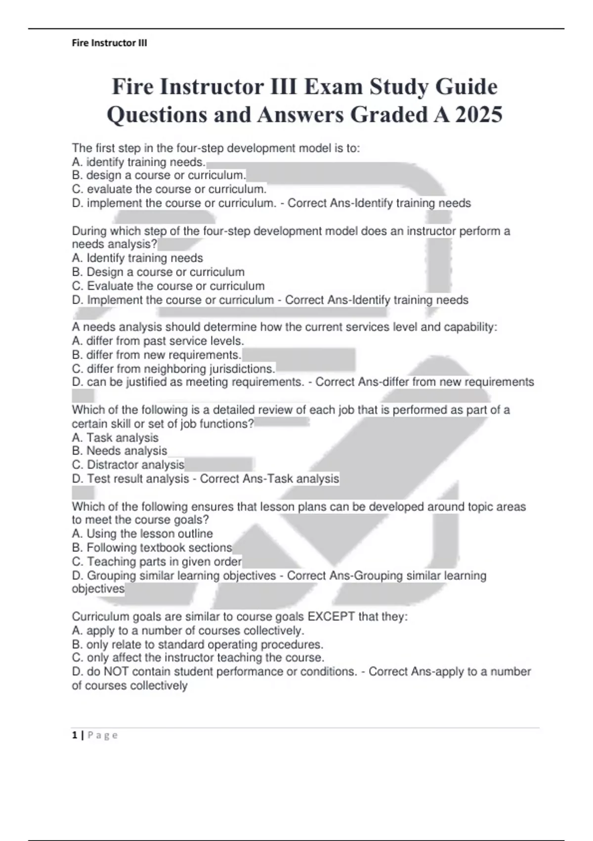 D. Evaluate the course or curriculum - Correct Ans-Identify training needs
