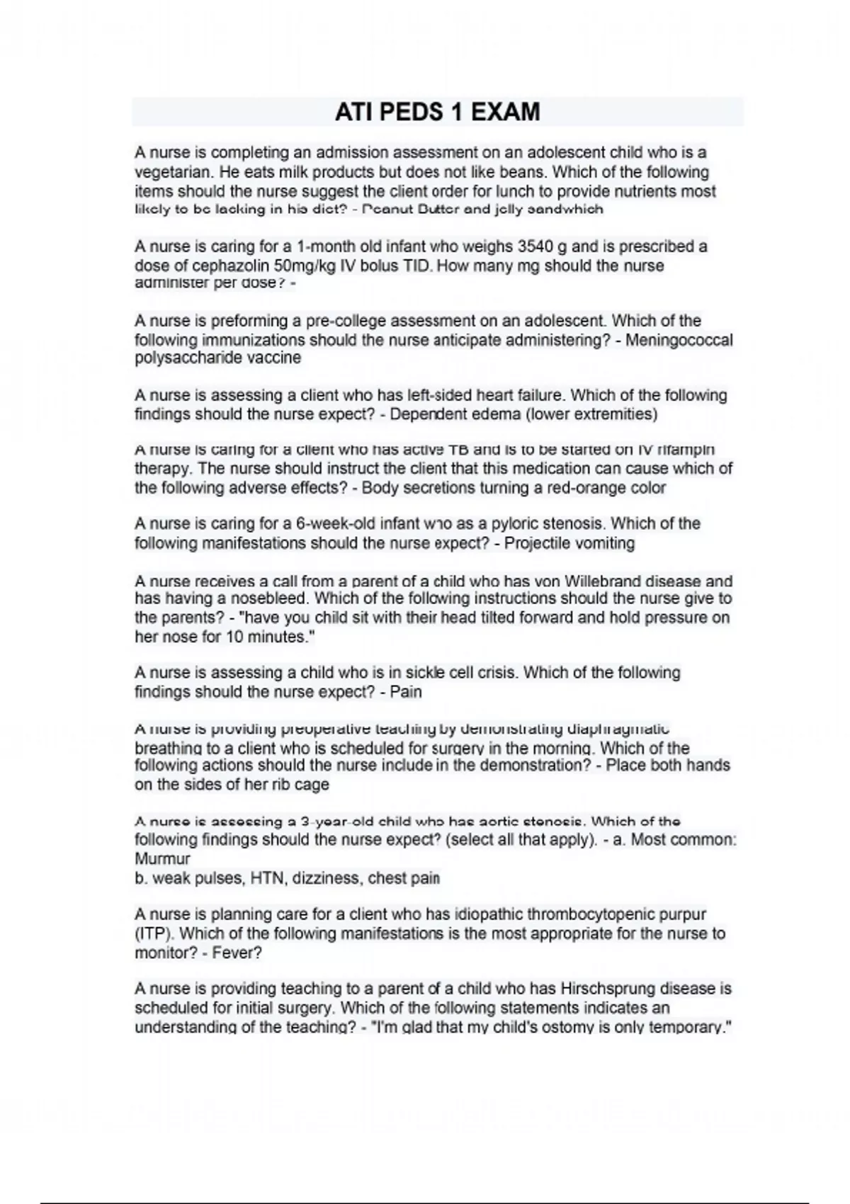 ATI PEDS 1 EXAM