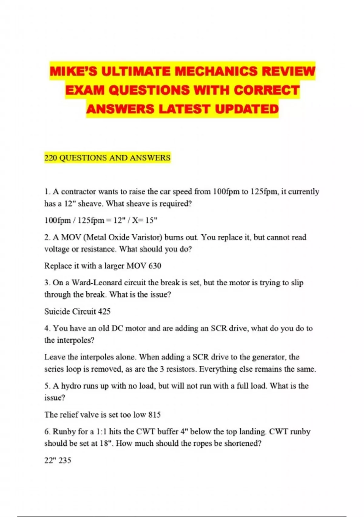 MIKE’S ULTIMATE MECHANICS REVIEW EXAM QUESTIONS WITH CORRECT ANSWERS LATEST UPDATED