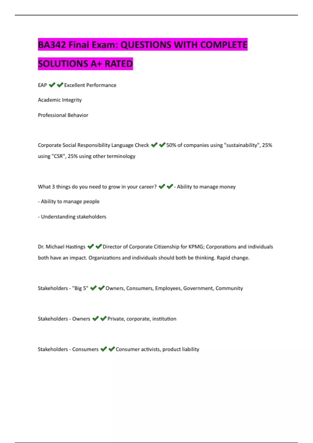 BA342 Final Exam: QUESTIONS WITH COMPLETE