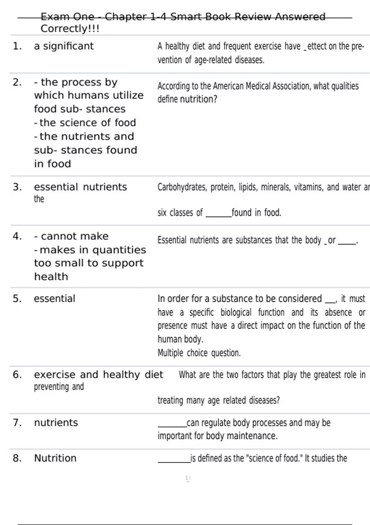 , Exam One - Chapter 1-4 Smart Book Review Answered
