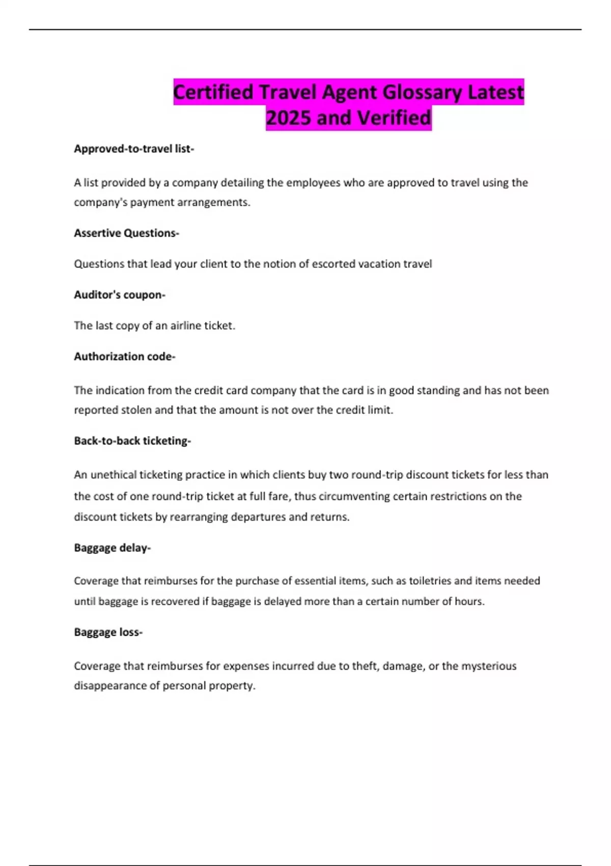 Certified Travel Agent Glossary Latest 2025 and Verified