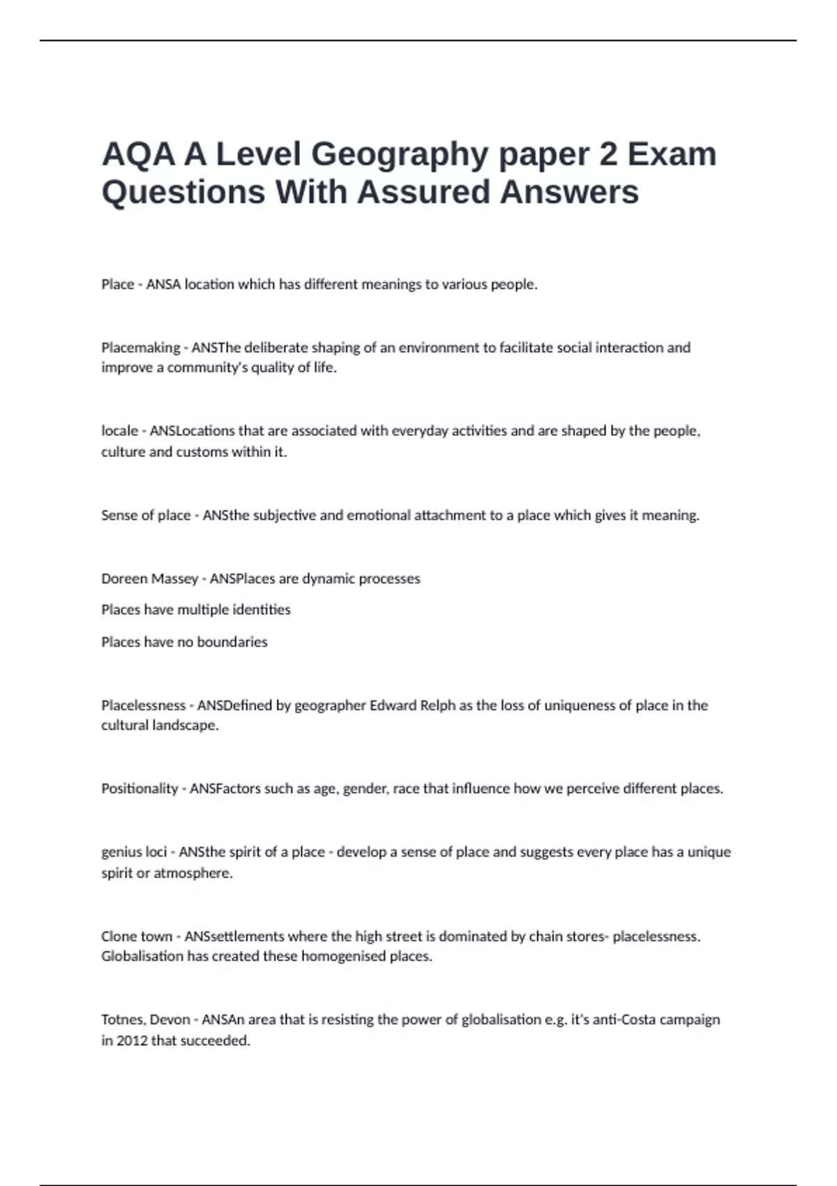 AQA A Level Geography paper 2 Exam