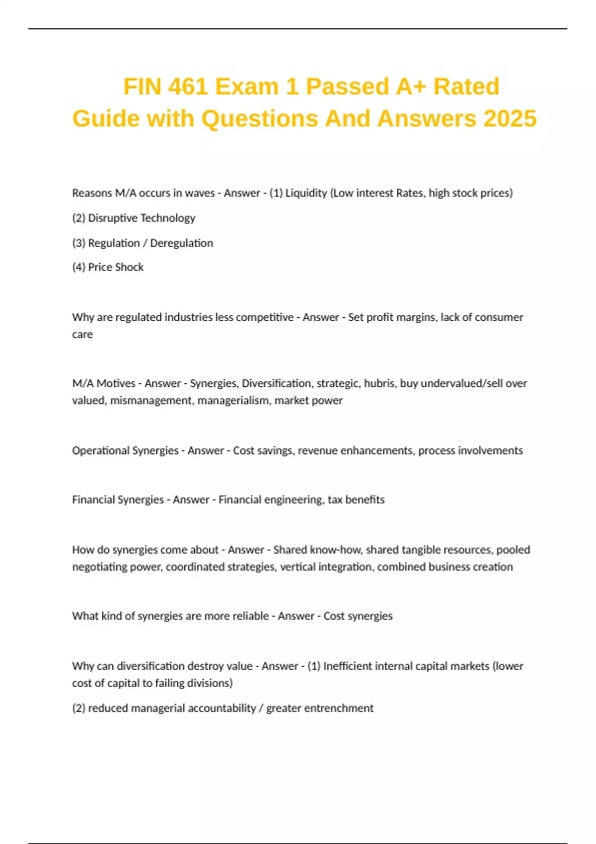 M/A Motives - Answer - Synergies, Diversification, strategic, hubris, buy undervalued/sell over