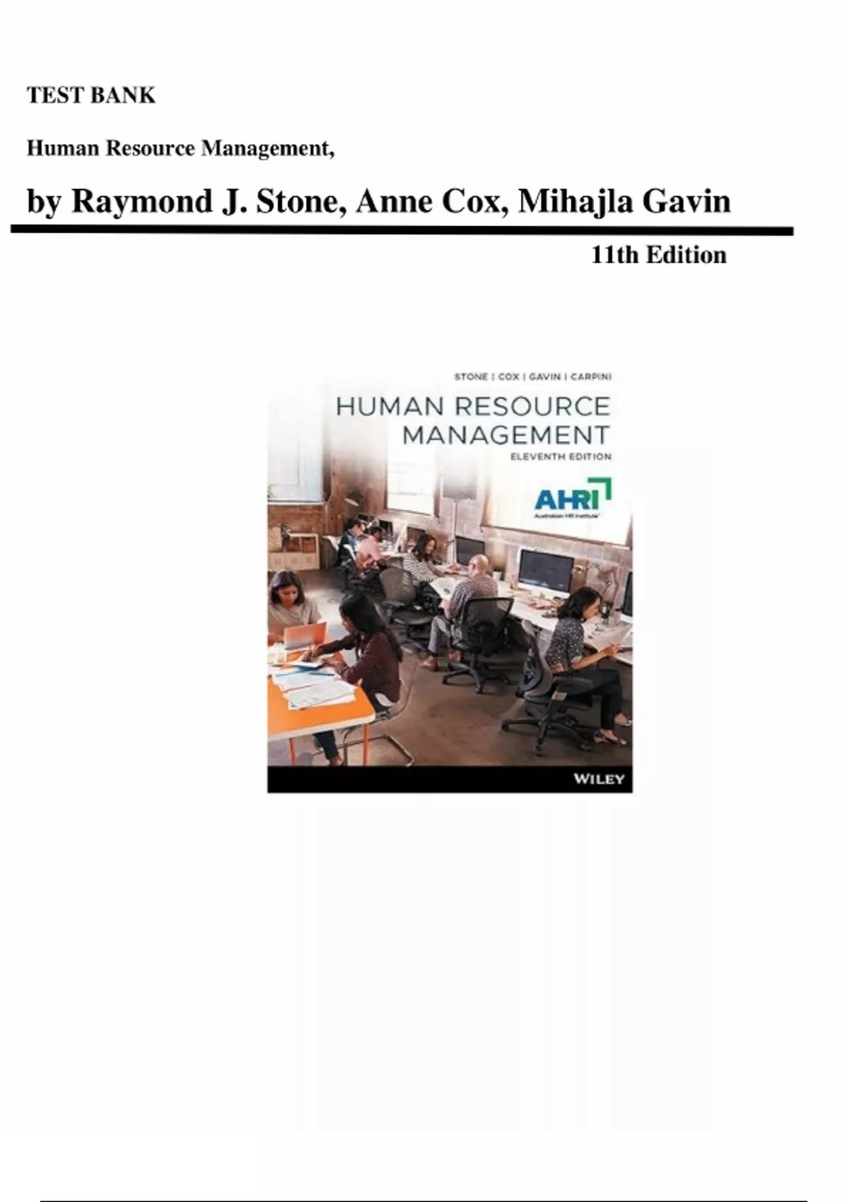 Test Bank - Human Resource Management, 11th Edition (by Raymond J. Stone, 2024), All Chapters