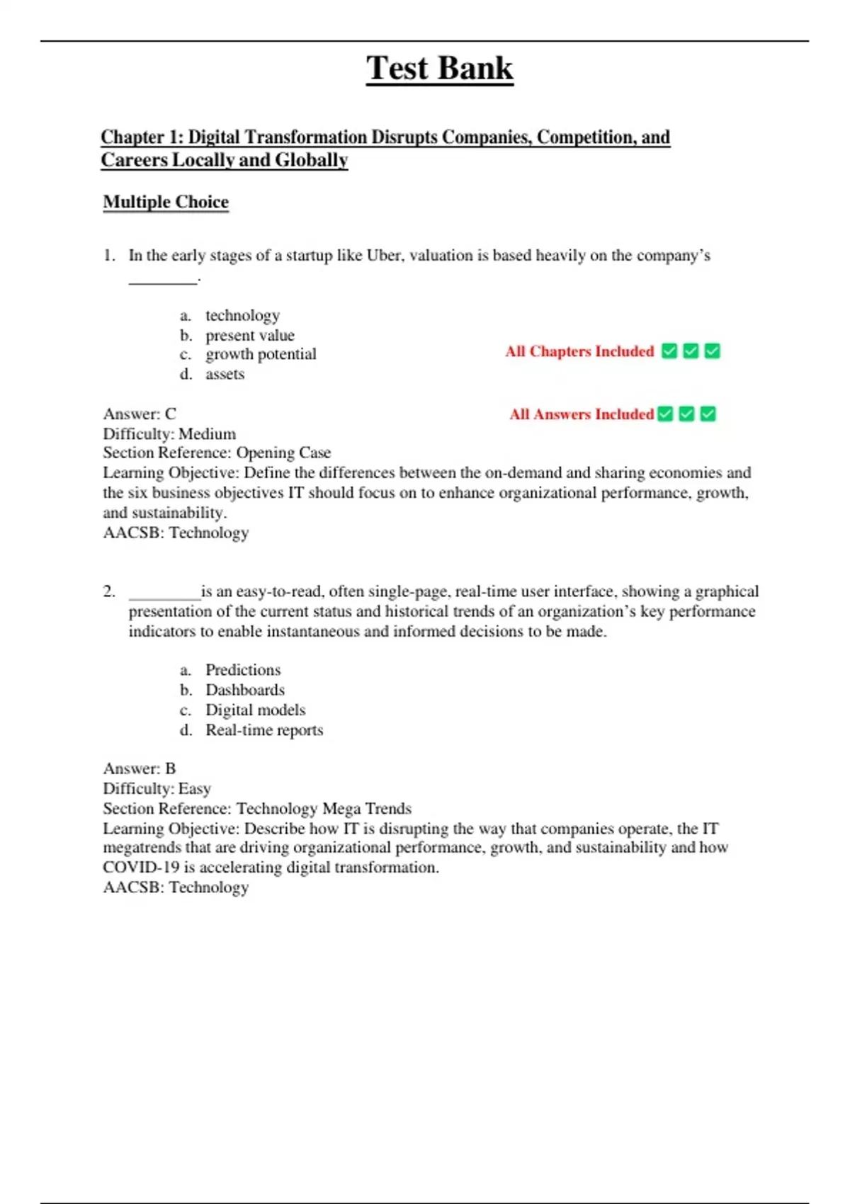 Test Bank for Information Technology for Management, 12th Edition by Efraim Turban, All Chapters