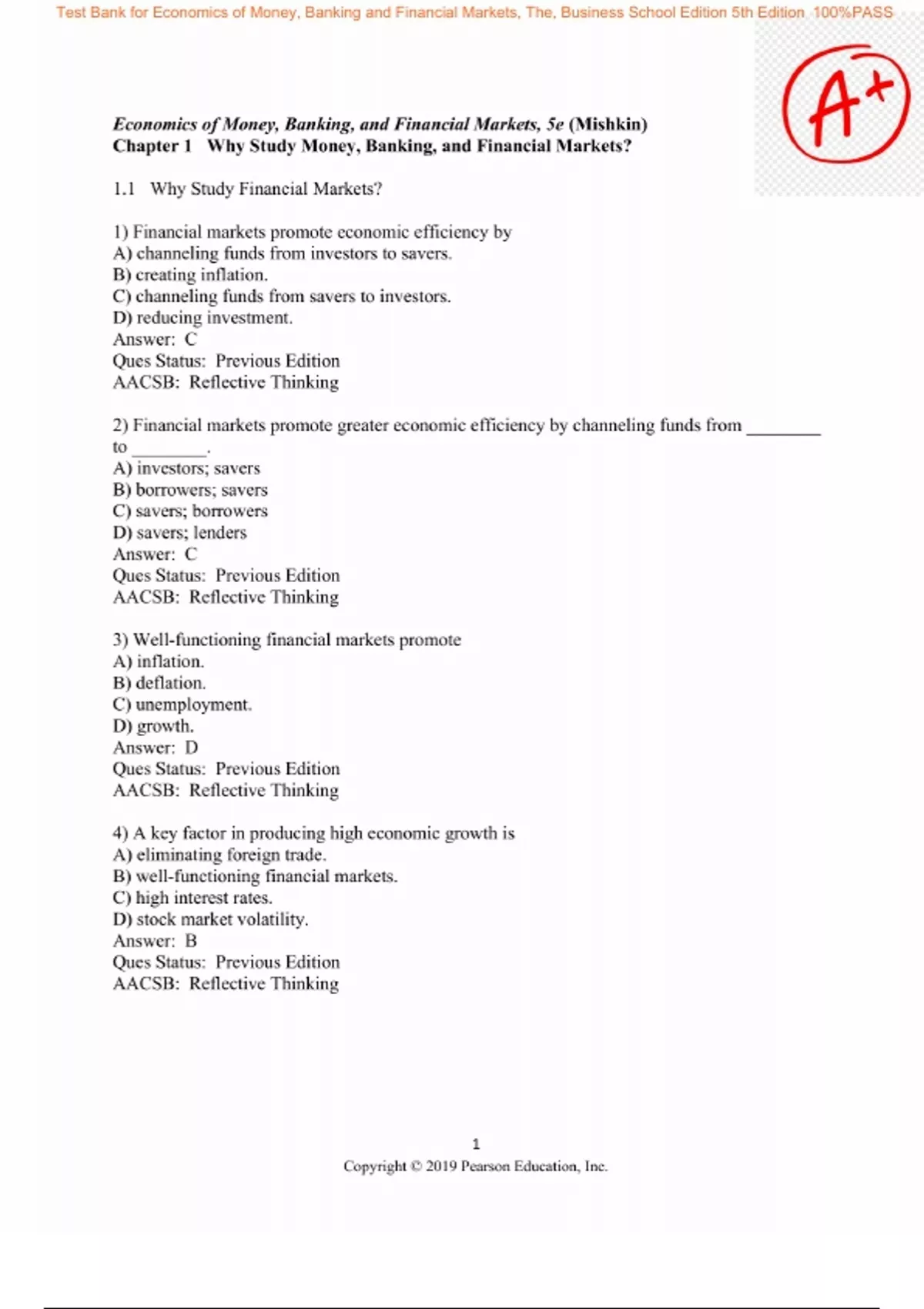 Test Bank for Economics of Money Banking and Financial Markets, The Business School Edition 5th Edition Mishkin. Exam questions and verified answers graded A+. Latest updated version 2025.