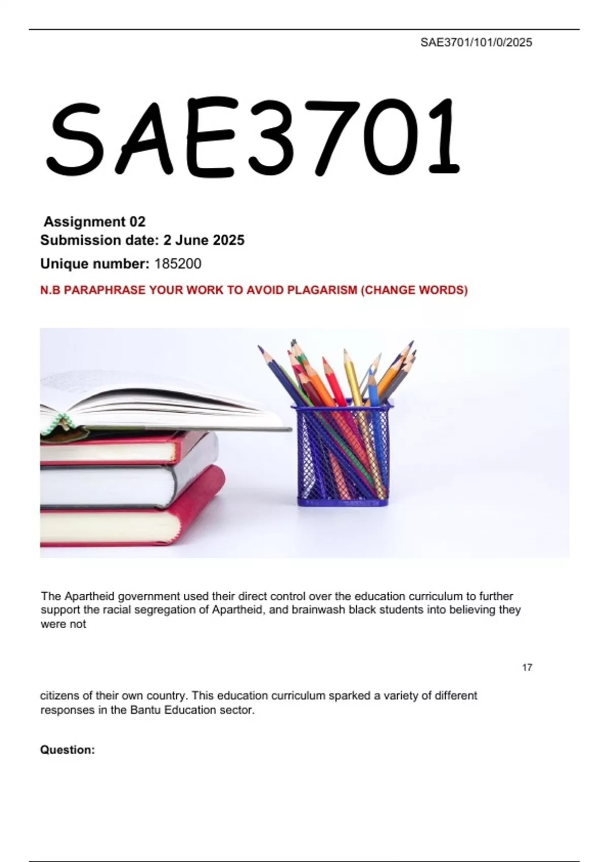 N.B PARAPHRASE YOUR WORK TO AVOID PLAGARISM (CHANGE WORDS)