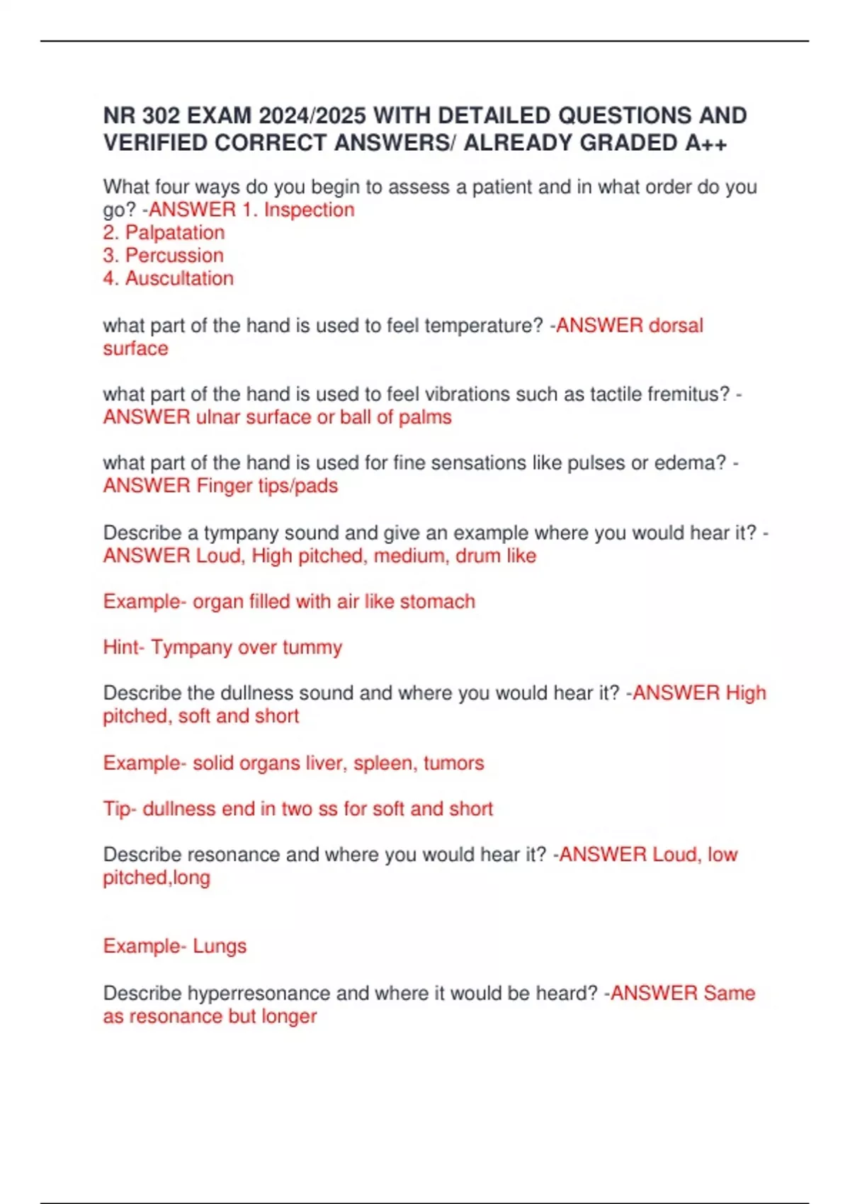 NR 302 EXAM 2024/2025 WITH DETAILED QUESTIONS AND