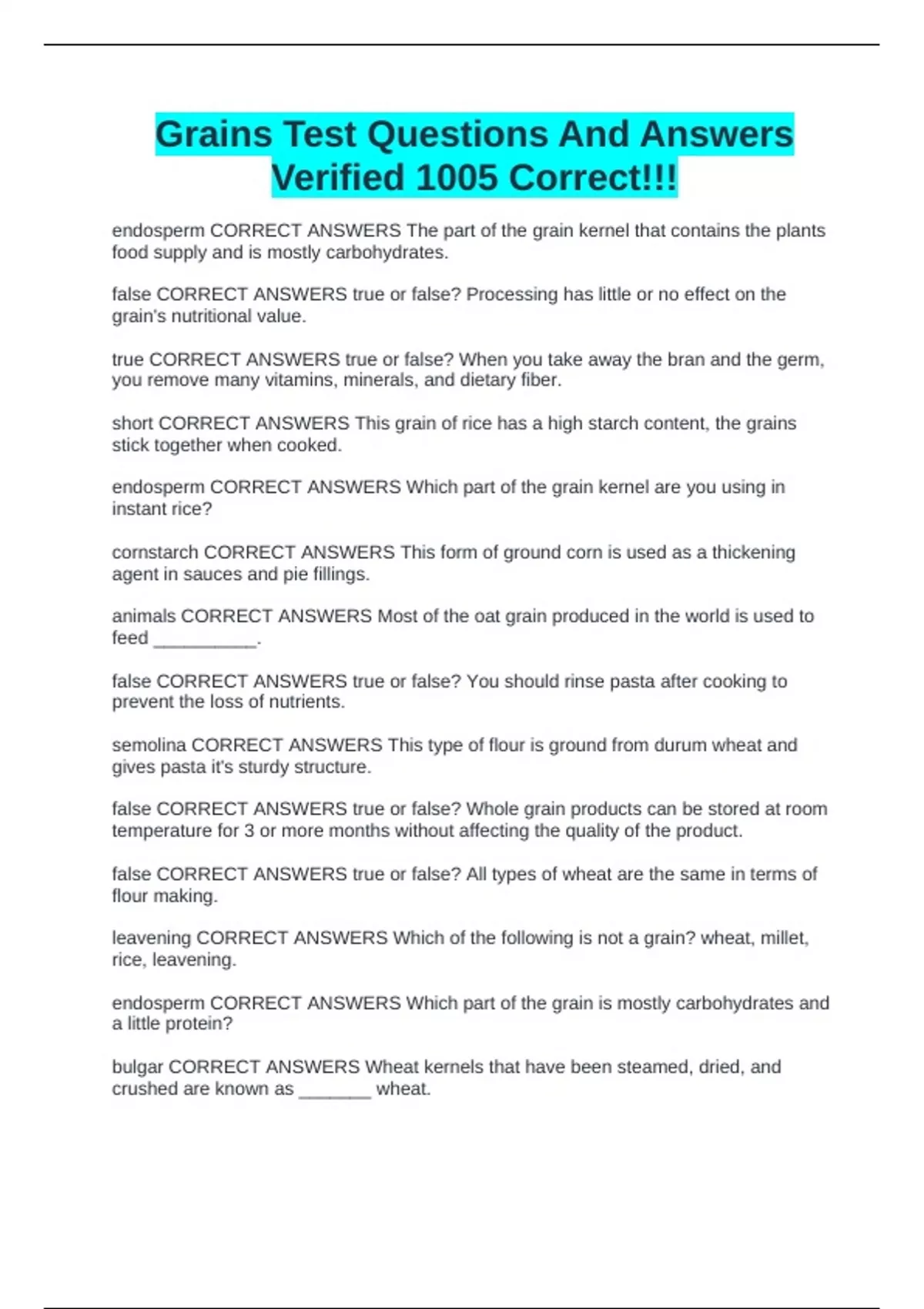 Grains Test Questions And Answers Verified 1005 Correct!!!