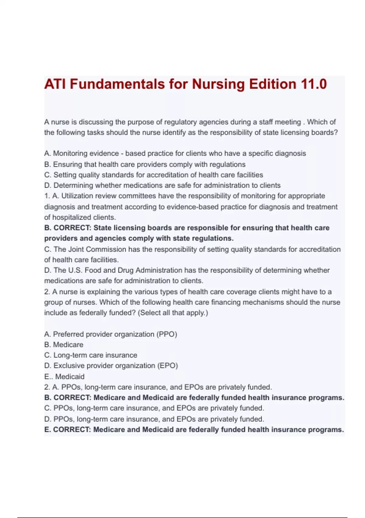 B. CORRECT: State licensing boards are responsible for ensuring that health care