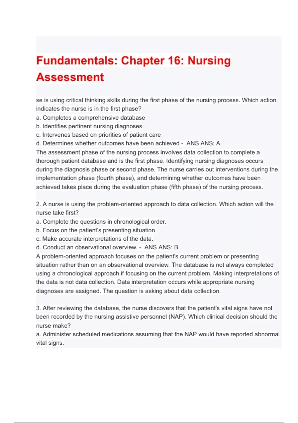 2. A nurse is using the problem-oriented approach to data collection. Which action will the