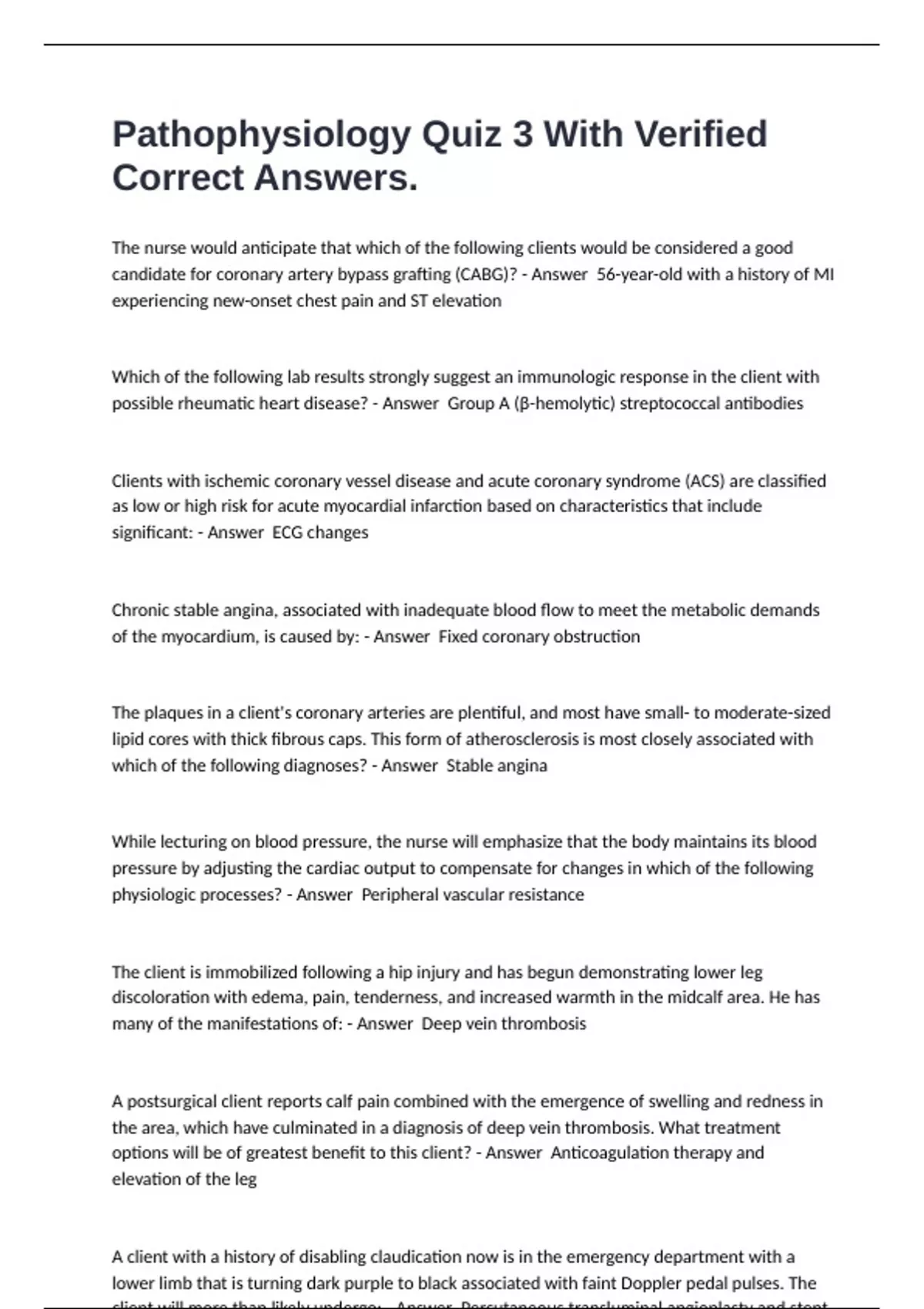 options will be of greatest benefit to this client? - Answer Anticoagulation therapy and