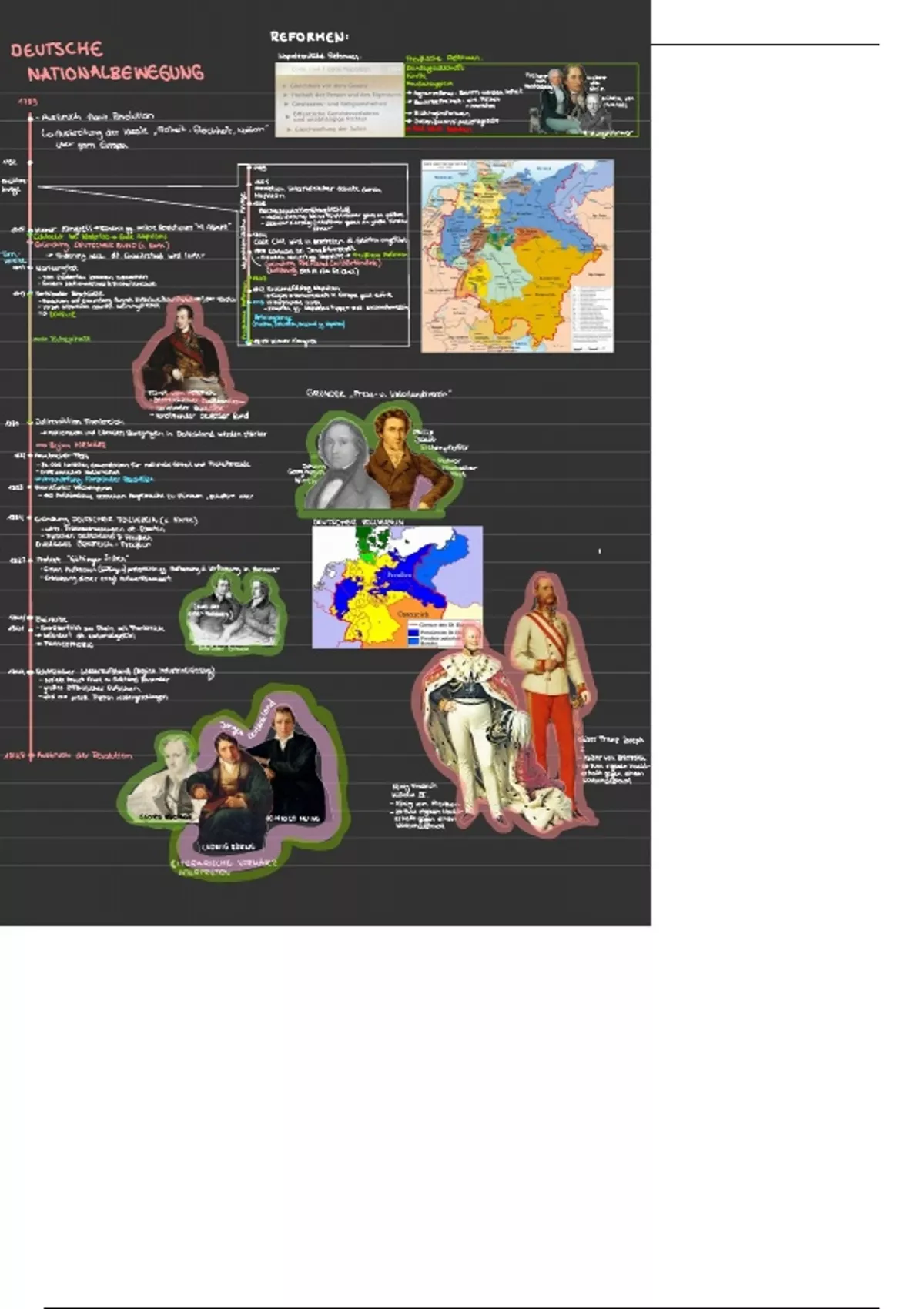 15 Punkte geschrieben!! Die Lernzettel umfassen die Nationalbewegungen in Deutschland, Italien und Polen anhand eines Zeitstrahls