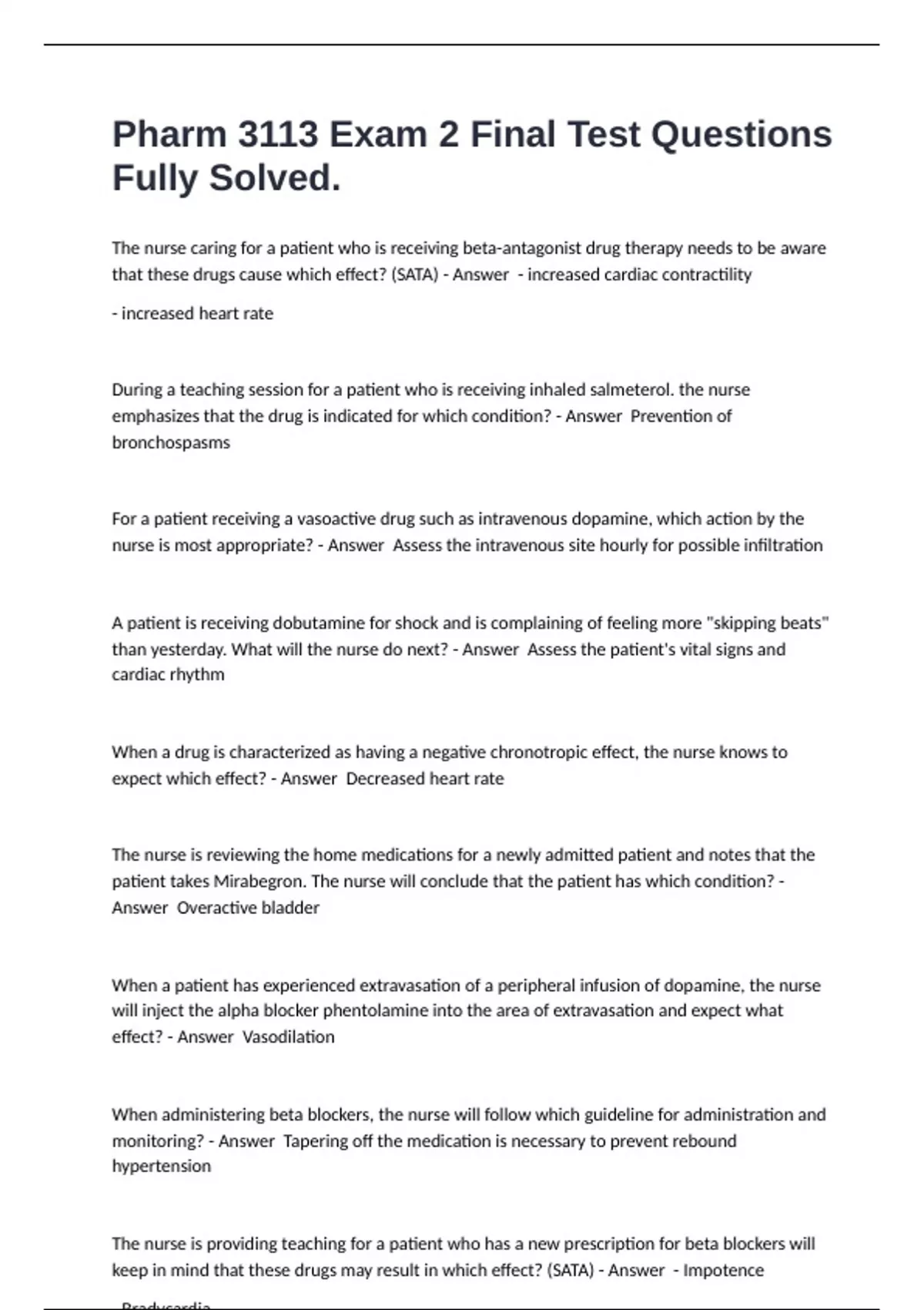 Pharm 3113 Exam 2 Final Test Questions Fully Solved.