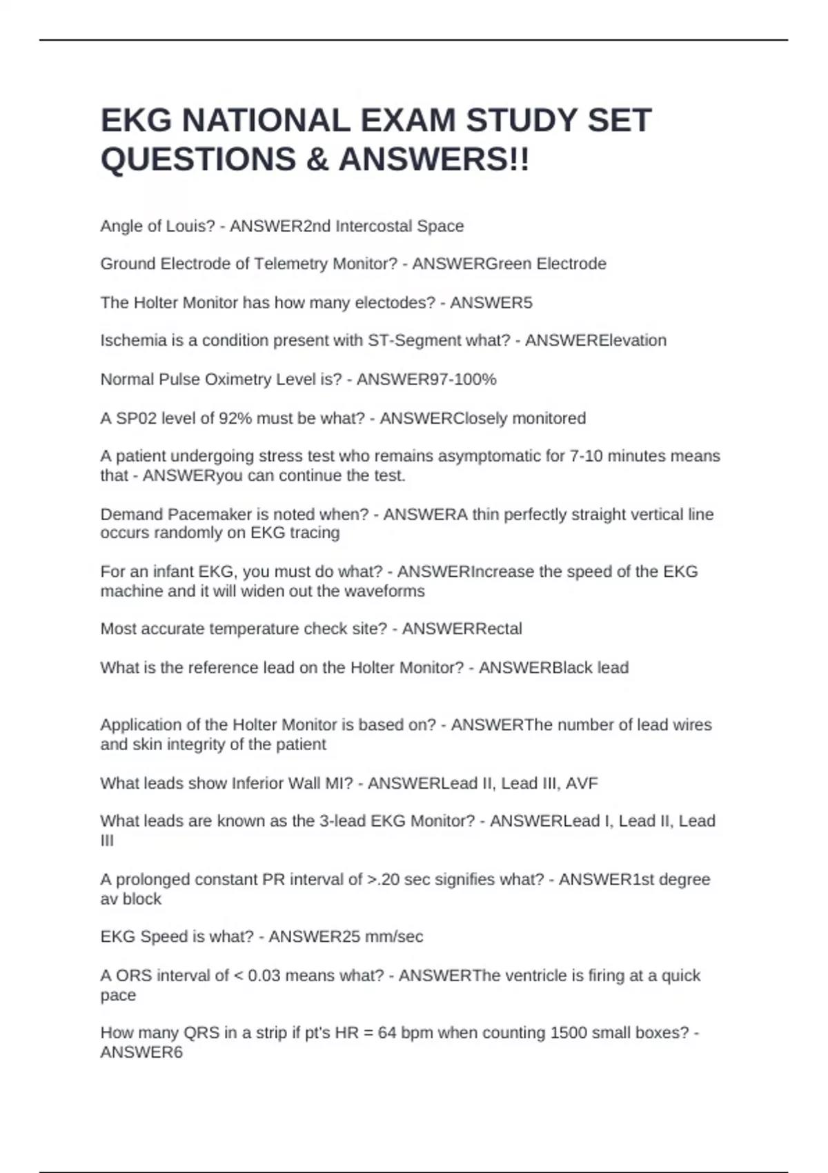 EKG NATIONAL EXAM STUDY SET QUESTIONS & ANSWERS!!