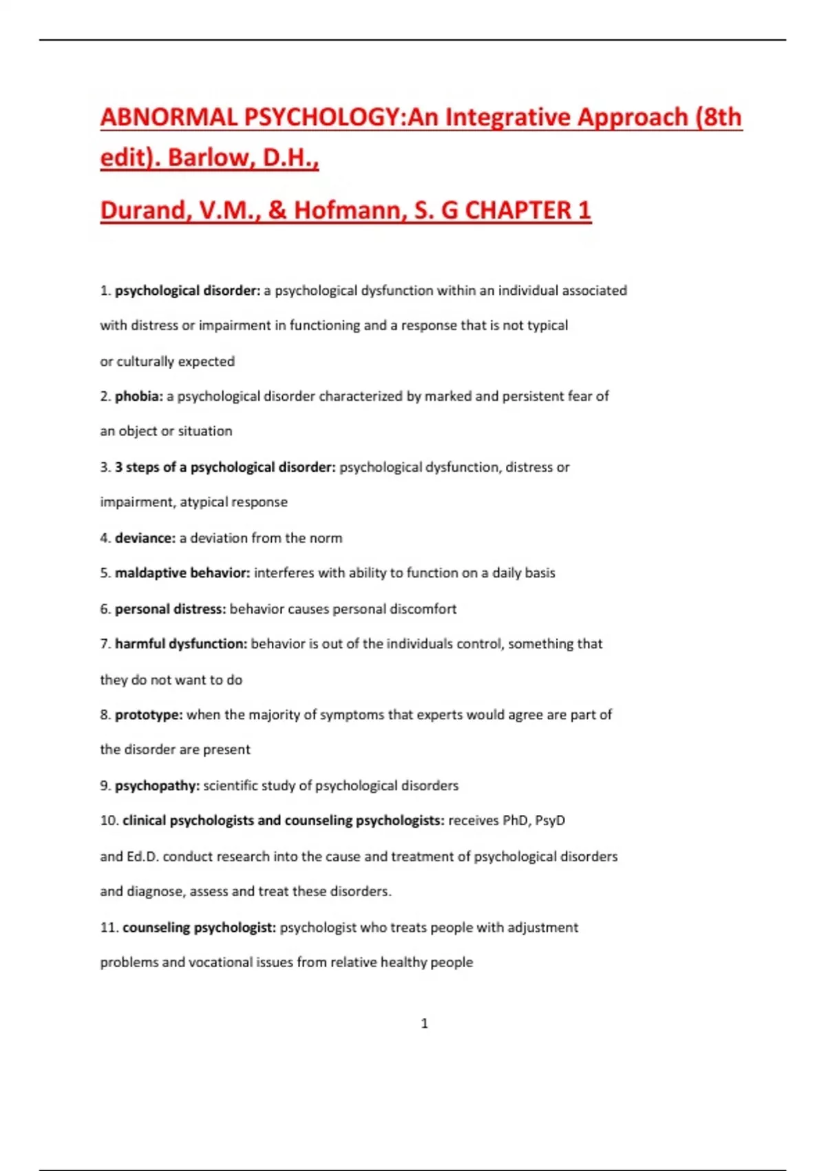 Test bank for abnormal psychology an integrative approach 8th edition by david h. barlow v. mark durand stefan g. hofmann 9781337638425 chapter 1-16 complete guide .