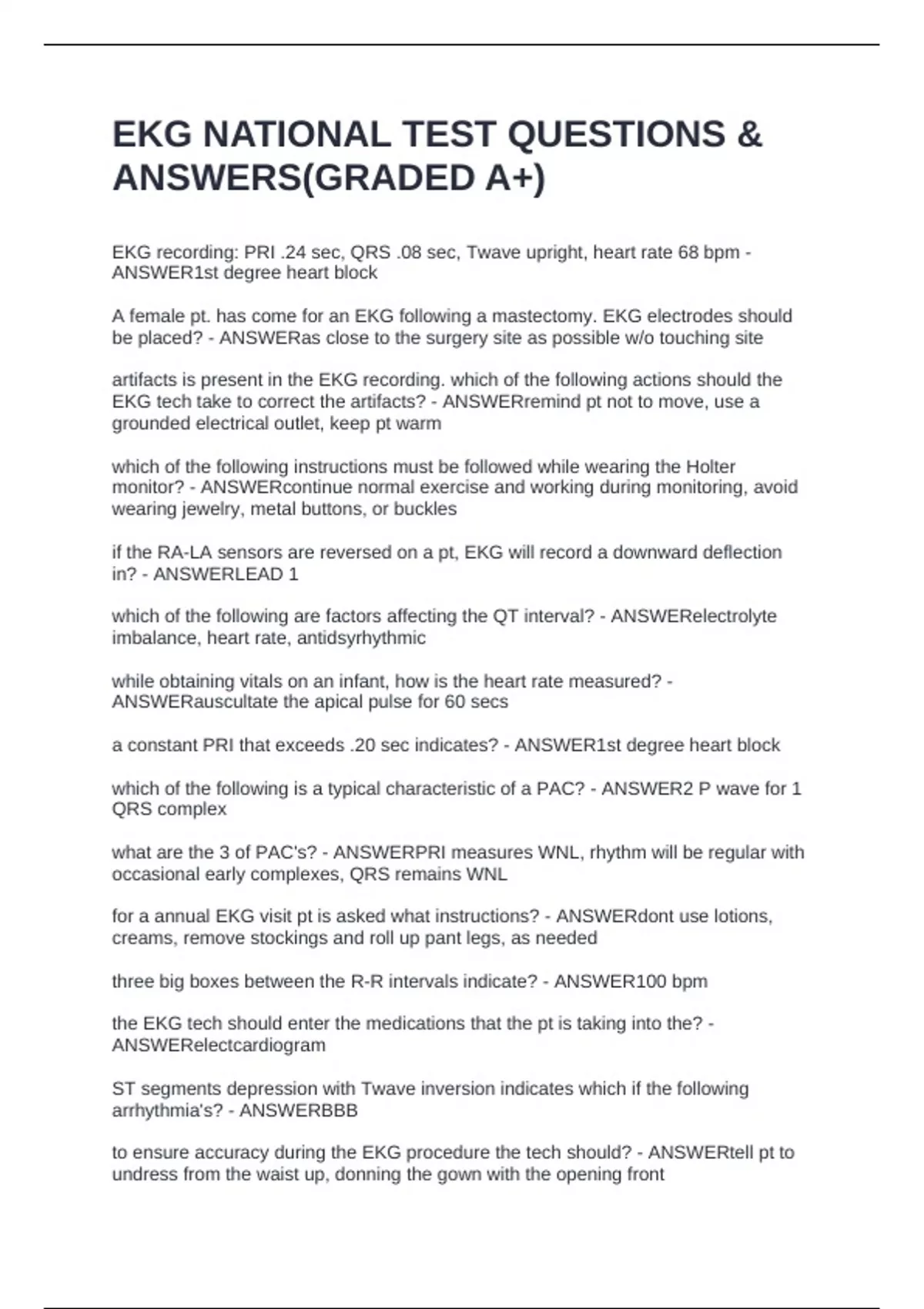 for a annual EKG visit pt is asked what instructions? - ANSWERdont use lotions,