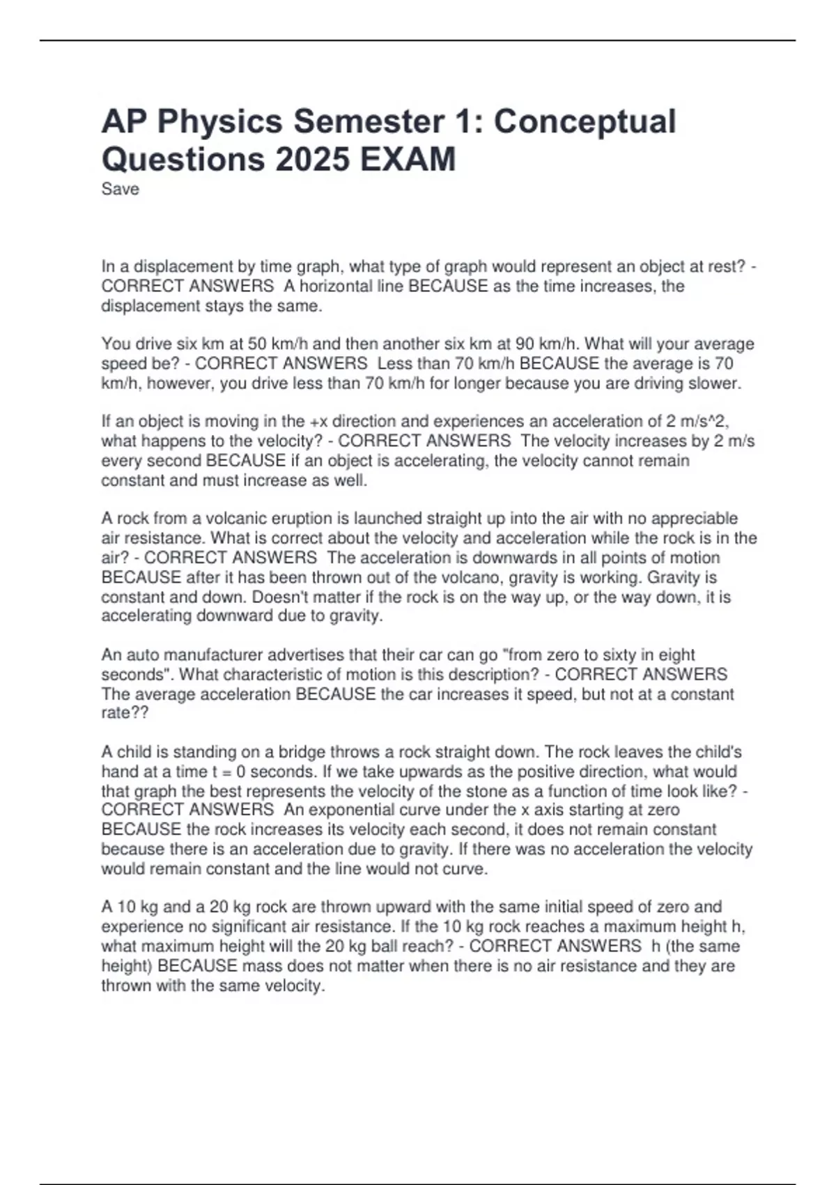 air? - CORRECT ANSWERS The acceleration is downwards in all points of motion