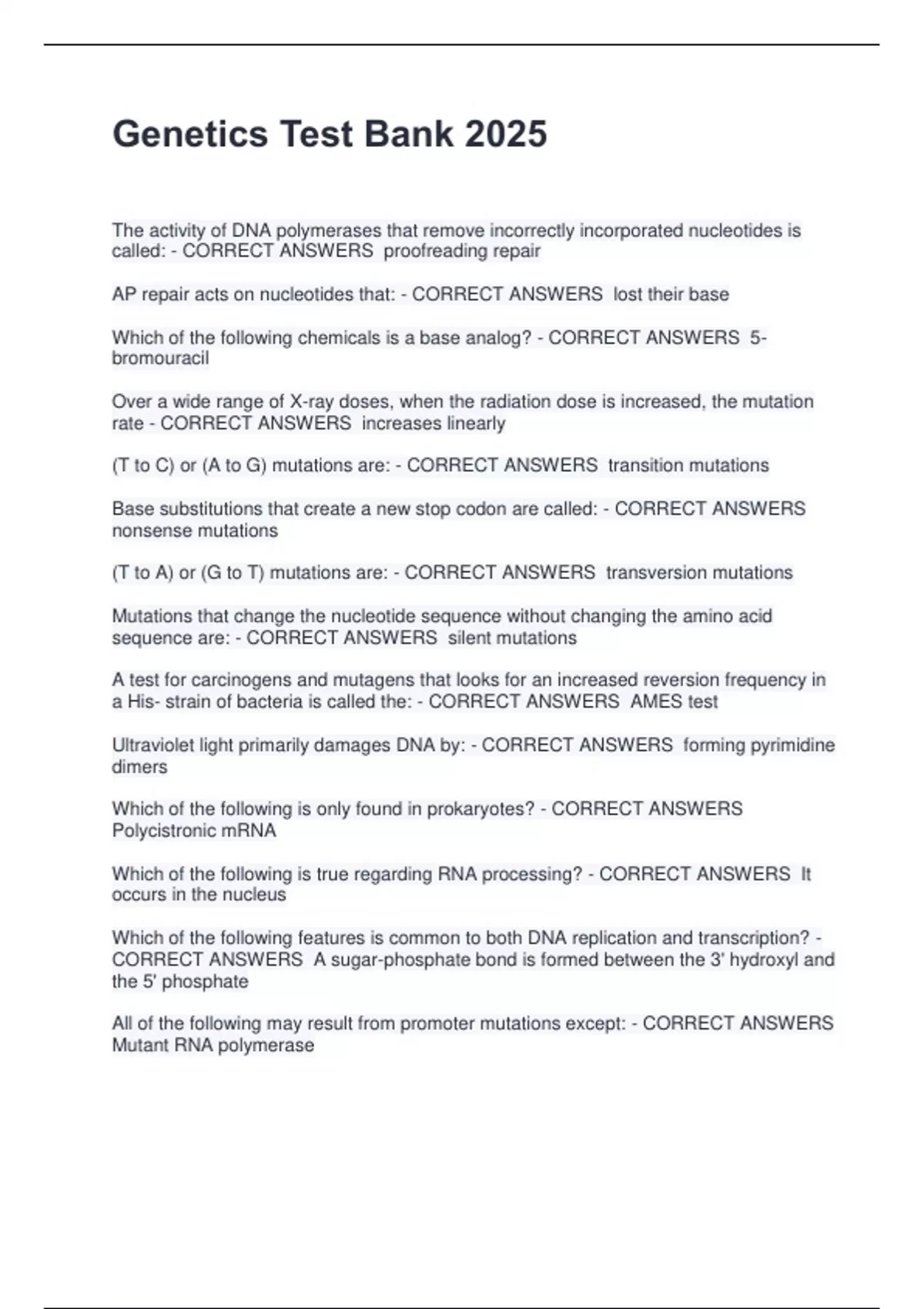 CORRECT ANSWERS RNA polymerase II