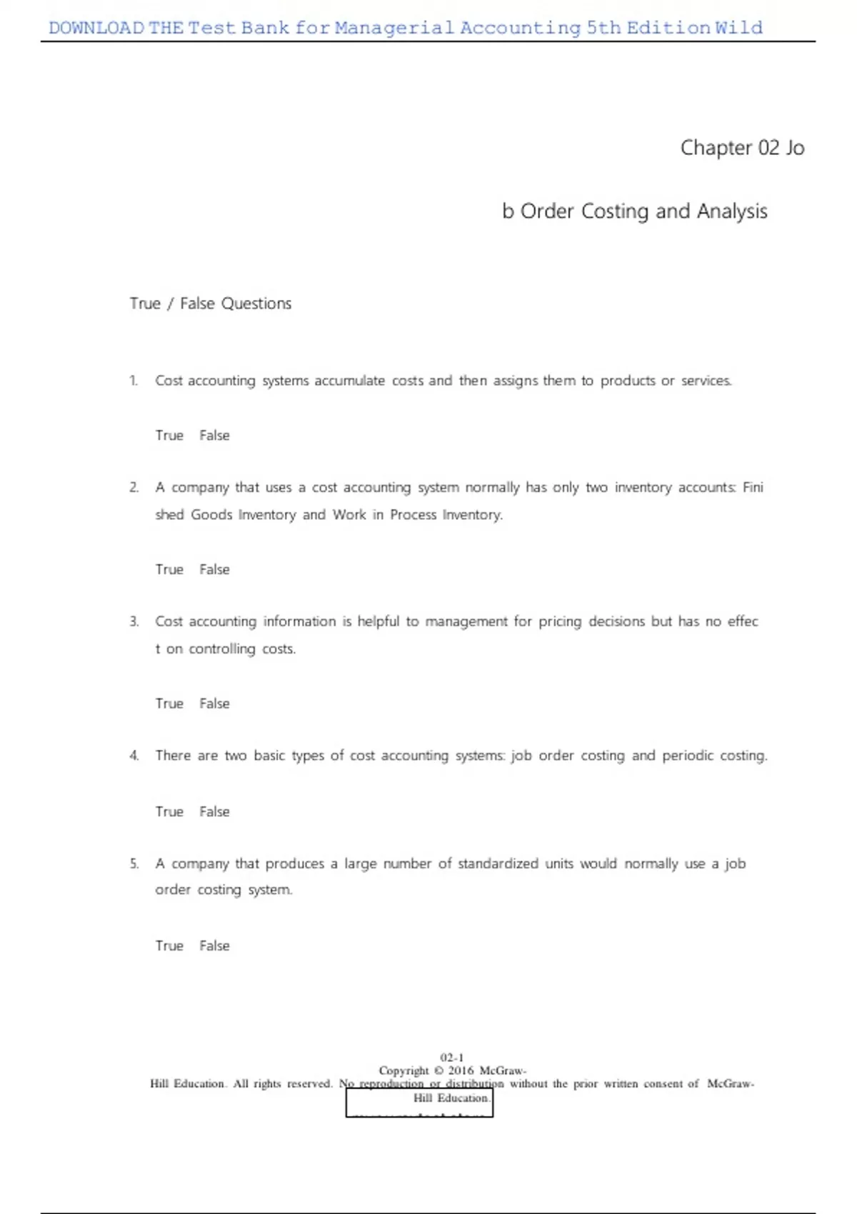 , DOWNLOAD THE Test Bank for Managerial Accounting 5th Edition Wild