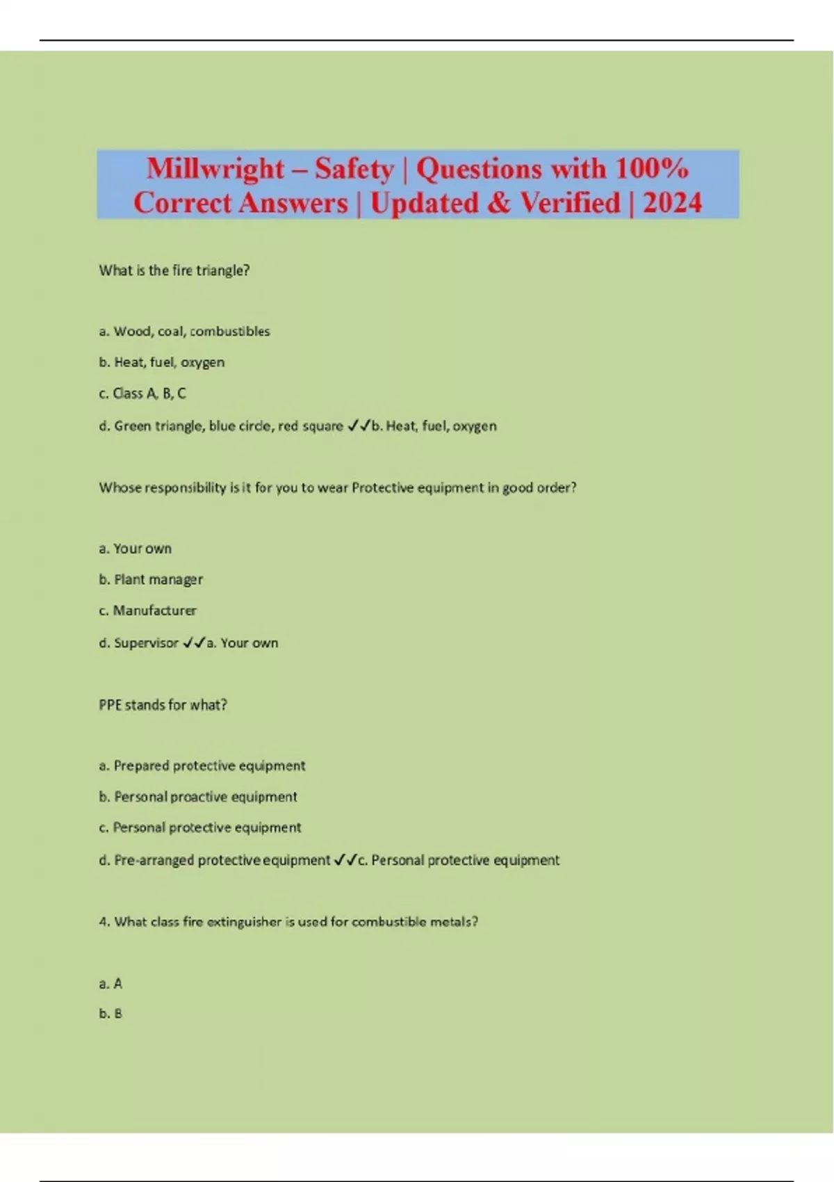 Millwright - Safety | Questions with 100% Correct Answers | Updated & Verified | 2024